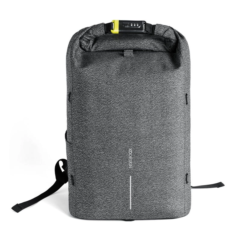 Wytrzymała tkanina zapobiega przecięciom, a zamknięcie roll‑top z zamkiem szyfrowym niezawodnie zabezpiecza komorę główną przed niepożądanym dostępem.