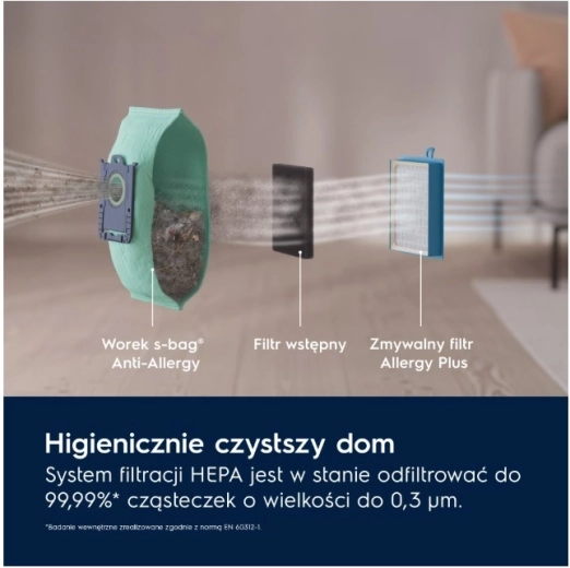 - do 99,99% cząstek o wielkości 0,3 μm