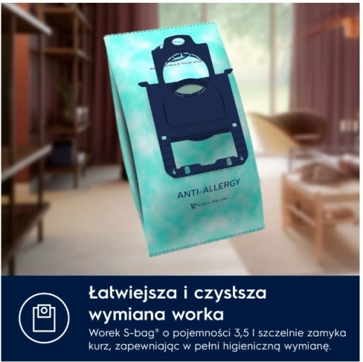 - Większa pojemność: specjalna struktura równomiernie rozprowadza zabrudzenia i mieści więcej kurzu.