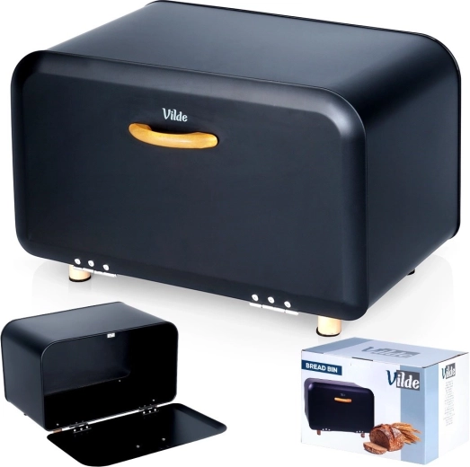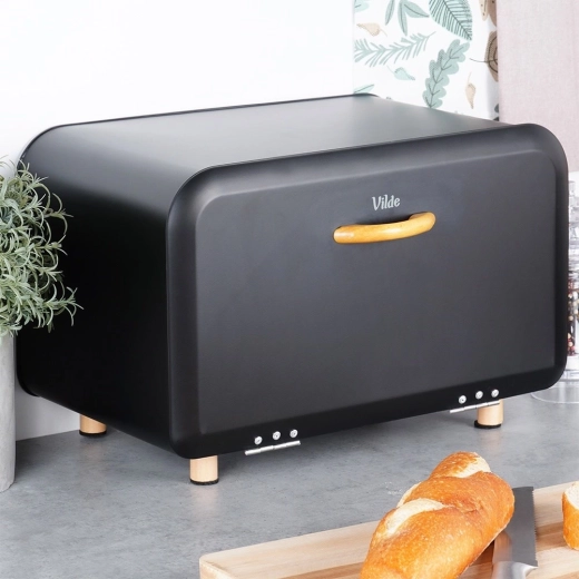 Utrzymaj swoje pieczywo dłużej pachnące i chrupiące. Metalowy chlebak Vilde w eleganckiej matowej czerni ogranicza dopływ powietrza, dzięki czemu pomaga zachować świeżość i smak bochenków oraz bułek. Dzięki kompaktowym wymiarom zmieści się na blacie, a jednocześnie oferuje sporo miejsca na codzienny zapas pieczywa.