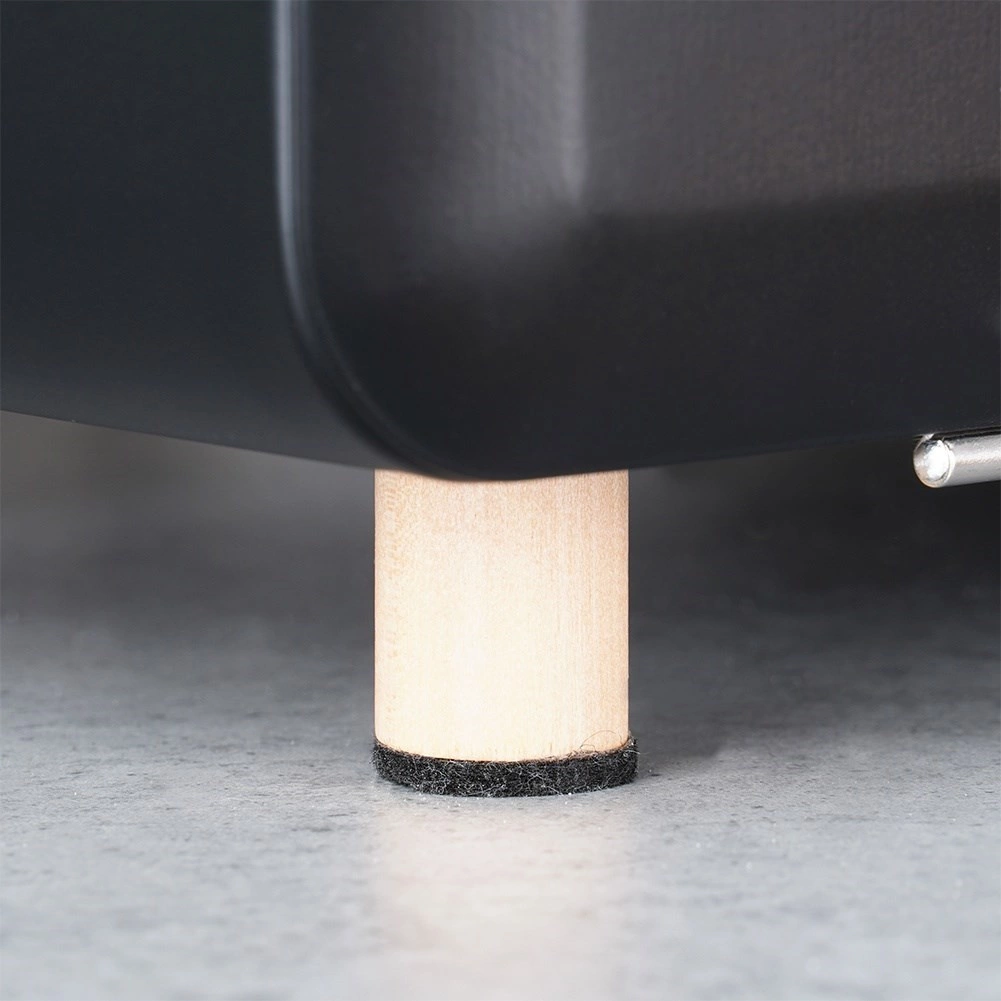Cztery drewniane nóżki z filcowymi podkładkami chronią blat roboczy, a metalowa konstrukcja zapobiega zgniataniu pieczywa.