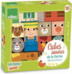 Vilac Drewniane dźwiękowe klocki Farma to zabawne i edukacyjne zabawki, które pomagają dzieciom rozwijać umiejętności motoryczne i odkrywać różne dźwięki.