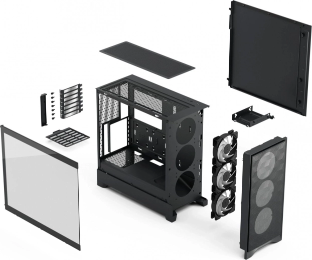 Przedni i górny panel mesh w połączeniu z trzema fabrycznie zainstalowanymi wentylatorami RGB zapewniają silny przepływ powietrza i natychmiast obniżają temperatury podzespołów.