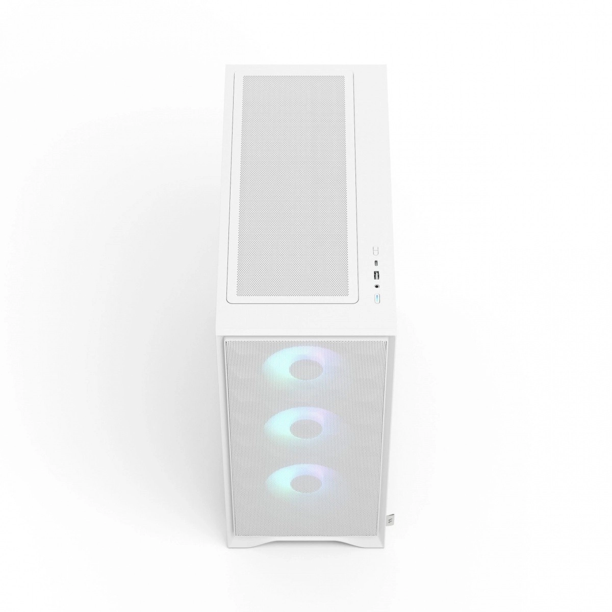 Fractal Design Pop 2 Air biały TG RGB łączy elegancki minimalizm z naciskiem na maksymalne chłodzenie. Drobna przednia i górna siatka mesh, trio fabrycznie zainstalowanych wentylatorów RGB oraz panel boczny z hartowanego szkła tworzą idealną bazę pod wydajny i efektowny wizualnie zestaw.