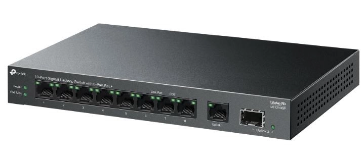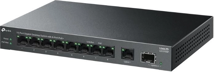 LS1210GP to niezawodny, niezarządzalny przełącznik gigabitowy zaprojektowany dla małych firm, biur domowych i instalacji monitoringu. Zapewnia 9× RJ45 10/100/1000 Mb/s oraz 1× SFP 1 Gb/s, dzięki czemu łatwo rozbudujesz sieć i podłączysz segmenty światłowodowe. Dzięki PoE+ (802.3af/at) zasili do ośmiu urządzeń jednym kablem – idealny do kamer IP, punktów dostępowych Wi‑Fi i telefonów IP.