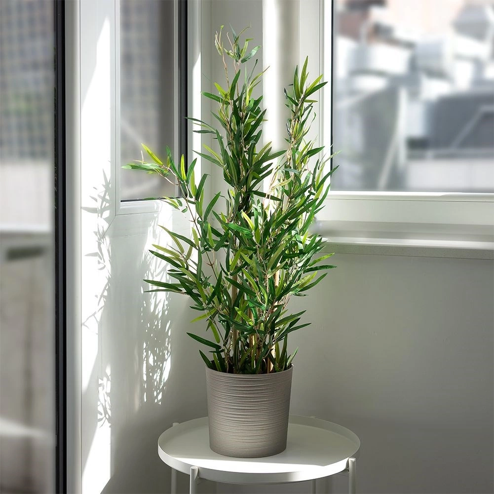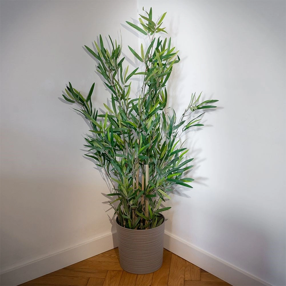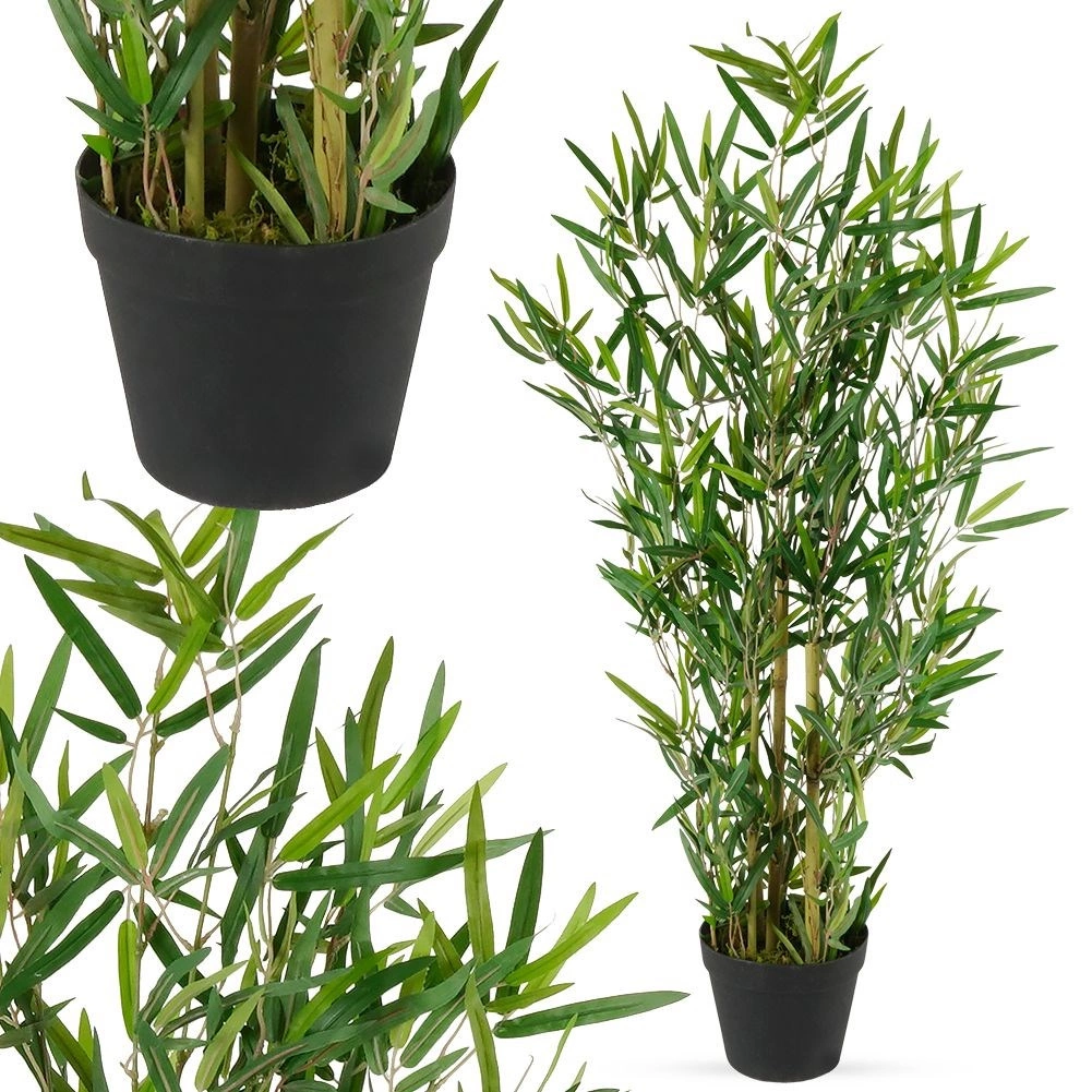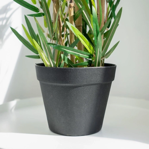 Ten sztuczny bambus w doniczce wyróżnia się naturalną strukturą liści i gęstym ulistnieniem, które prezentują się bardzo wiarygodnie. Dzięki wysokiej jakości materiałom zachowuje kształt i kolor, zapewniając elegancki, zielony akcent do każdego wnętrza bez podlewania i opadania liści.