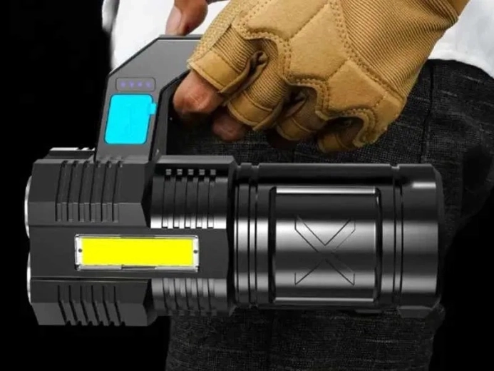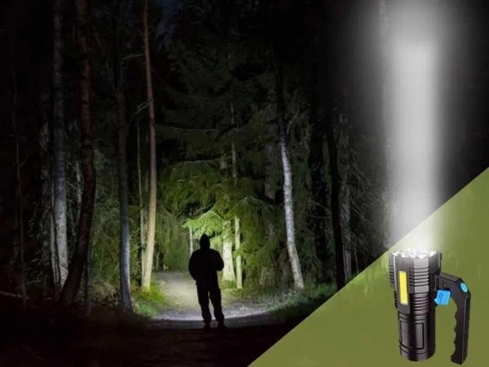 Uniwersalna ładowalna latarka LED do domu i na zewnątrz oferuje zasięg do 200 m, dwa źródła światła (4× T6 + boczne COB), wodoodporną konstrukcję oraz szybkie ładowanie USB. Dzięki kompaktowym wymiarom, solidnej budowie i czasowi pracy 4–5 godzin idealnie sprawdzi się na wycieczkach, w warsztacie oraz w sytuacjach awaryjnych.