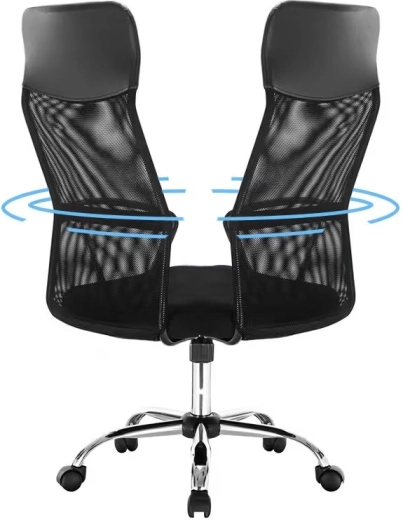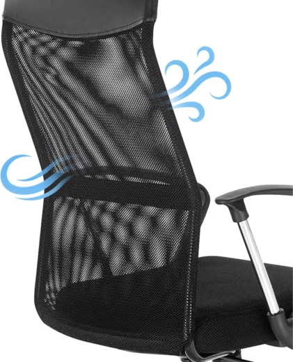 Wysokie oparcie z siatki dopasowuje się do pleców, poprawia wentylację i ogranicza przegrzewanie podczas długiego siedzenia.