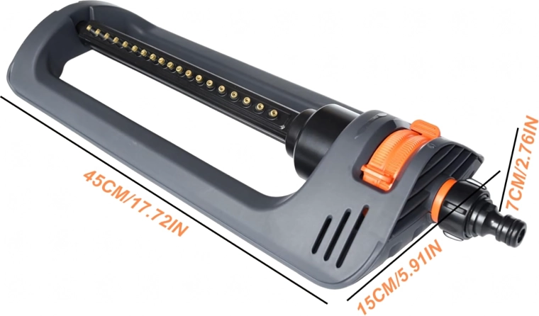 Ten zraszacz oscylacyjny to niezawodne rozwiązanie do regularnego nawadniania trawników, rabat ozdobnych i warzywników. Dzięki 19 precyzyjnie rozmieszczonym dyszom rozprasza wodę delikatnie i równomiernie na prostokątnym obszarze, a regulowany zasięg i kąt oscylacji pozwalają dopasować pokrycie do bieżących potrzeb.