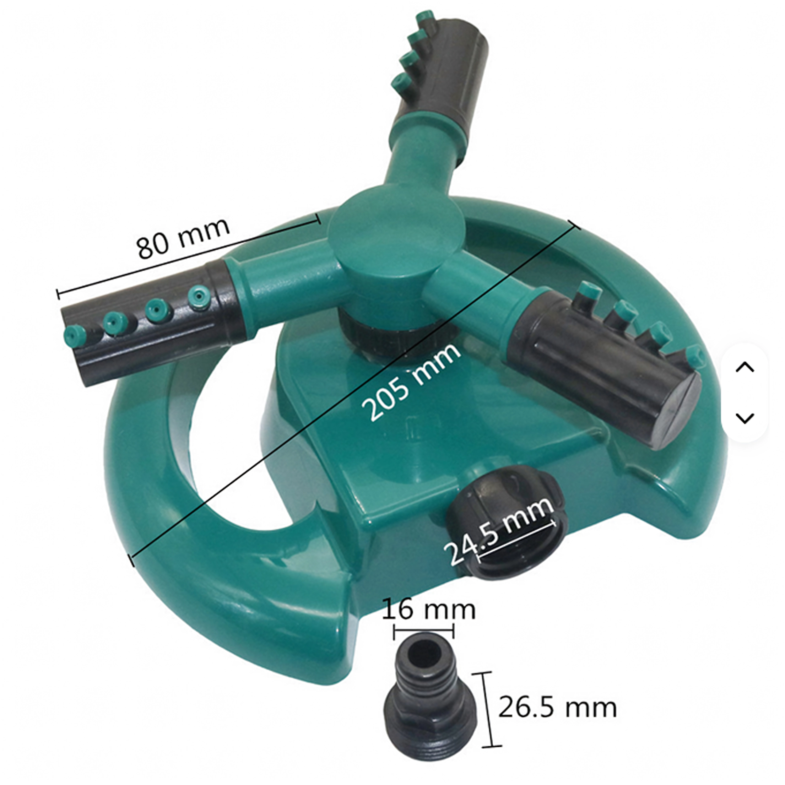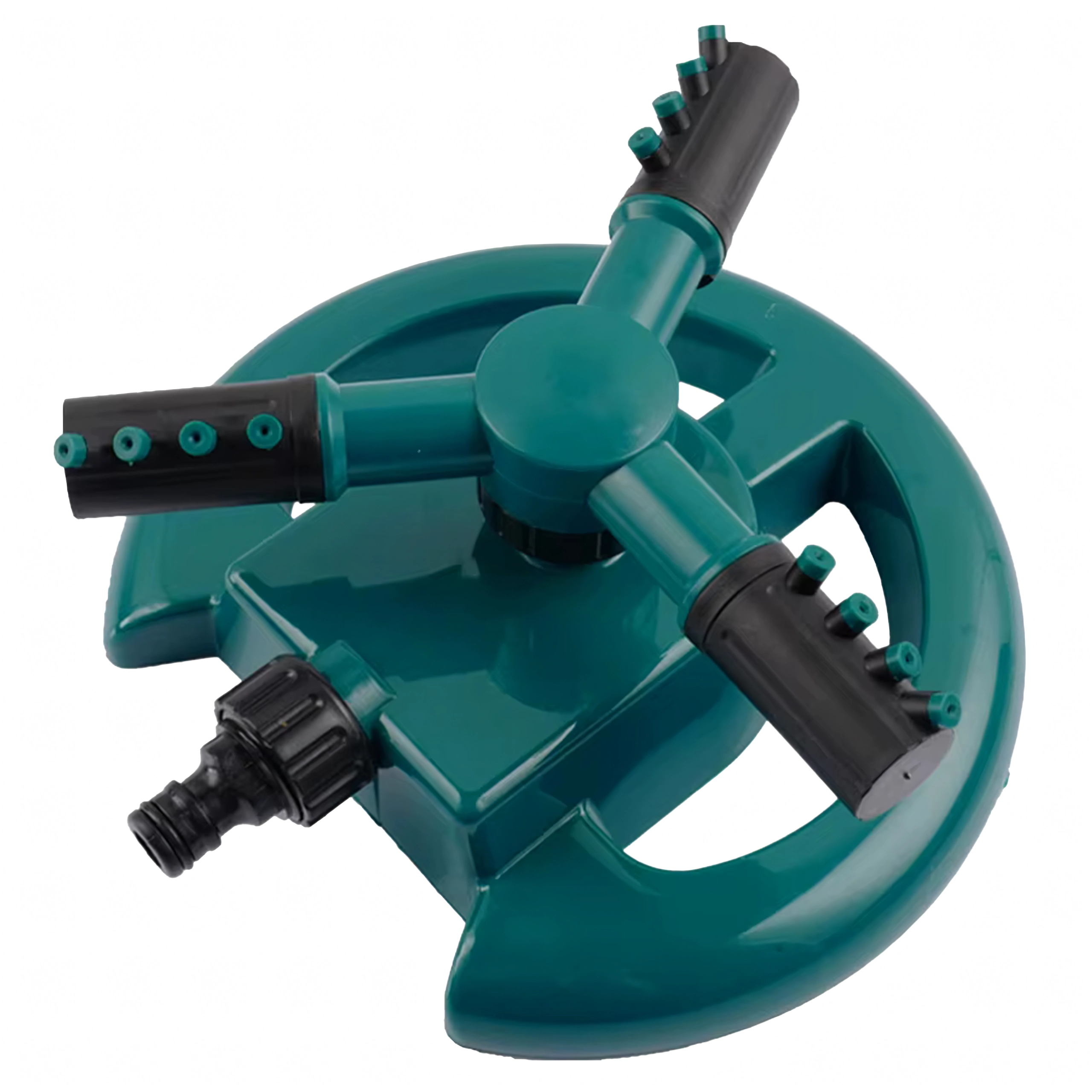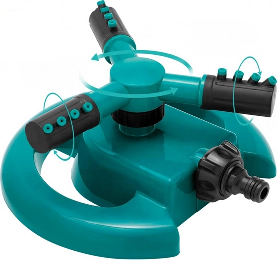 Ten trójramienny obrotowy zraszacz idealnie nadaje się do regularnego nawadniania trawników, rabat kwiatowych oraz grządek warzywnych. Solidna, okrągła podstawa zapewnia stabilność podczas pracy, a liczne dysze na ramionach tworzą delikatny deszcz dla łagodnego i równomiernego podlewania.