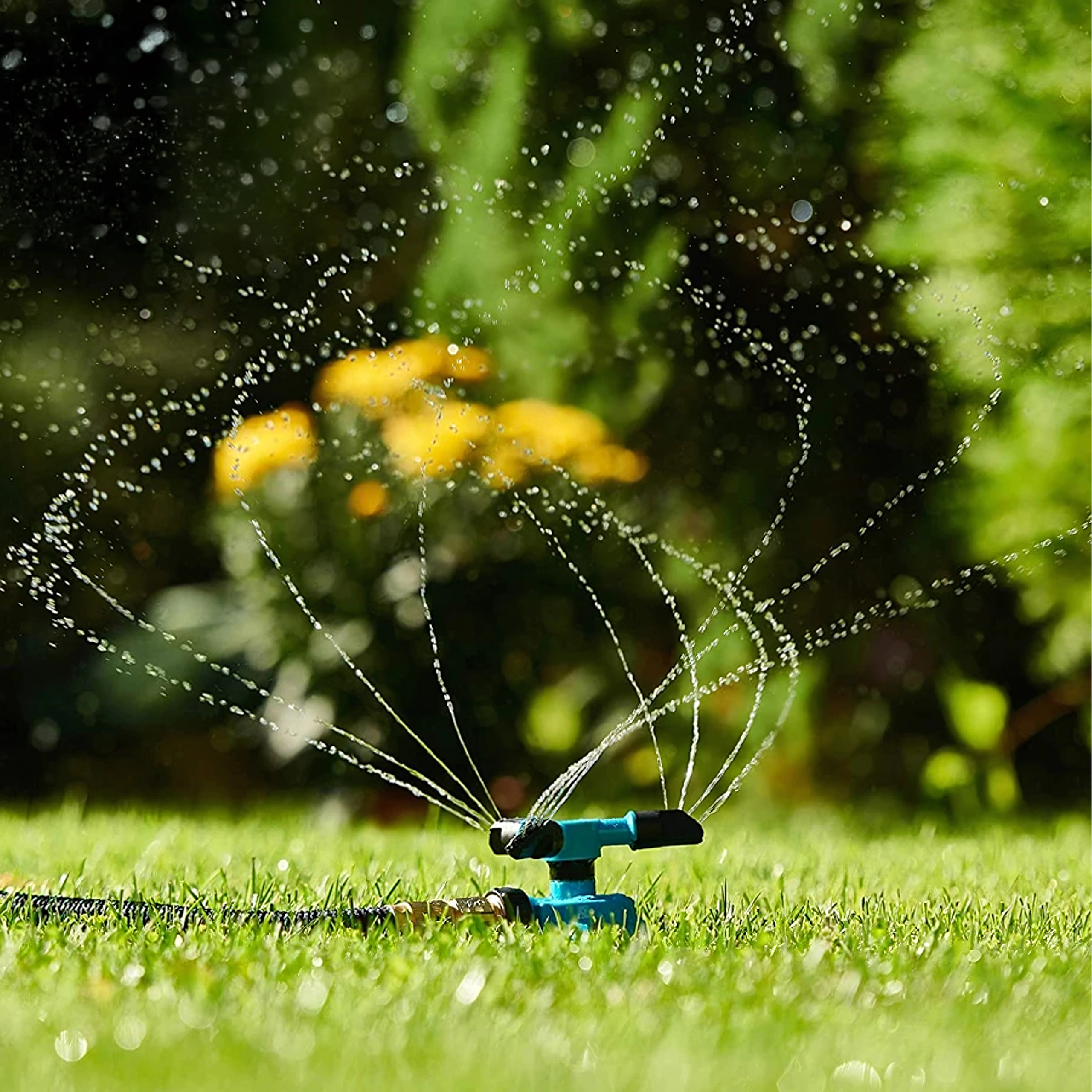 Dzięki obrotowi o 360° i regulowanym dyszom łatwo dopasujesz zasięg i wzór zraszania do wielkości powierzchni. Szybkie podłączenie do standardowego węża gwarantuje wygodną obsługę i bezproblemowe rozpoczęcie nawadniania.
