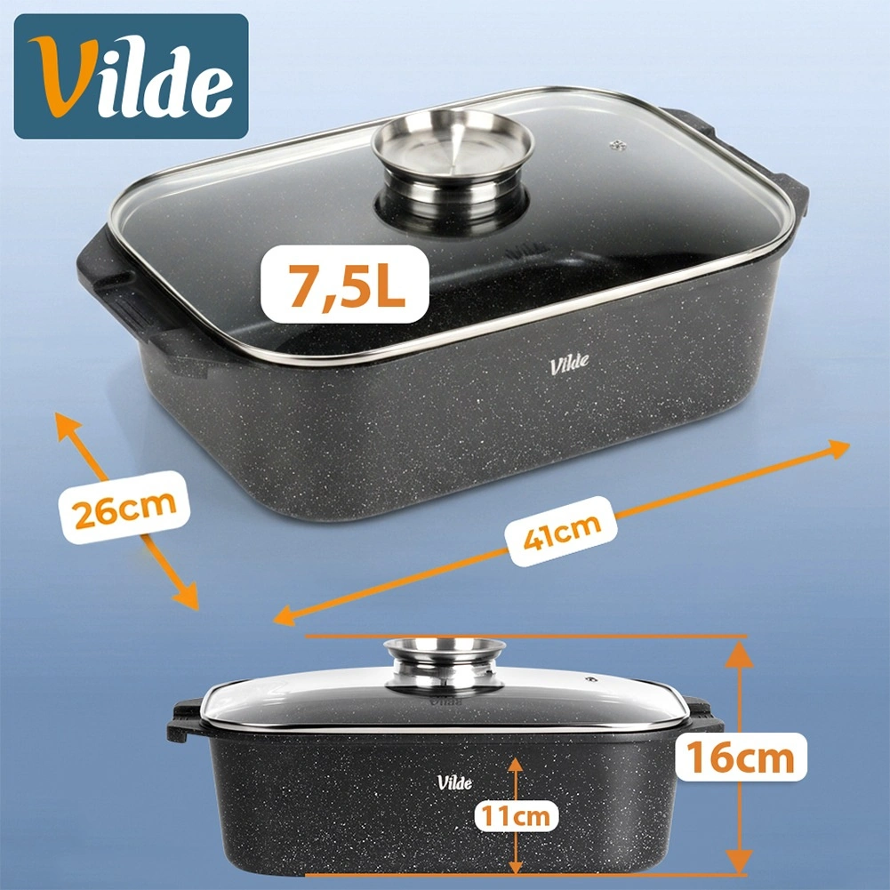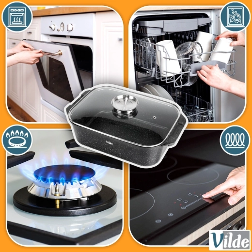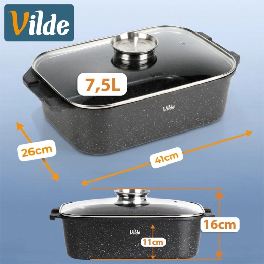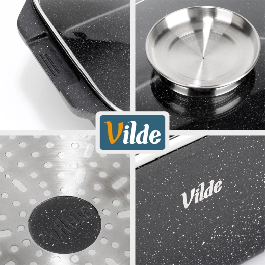 Łatwa pielęgnacja i długa żywotność: wysokiej jakości powłoka ogranicza przypalanie, a cały zestaw można myć w zmywarce. Oryginalny produkt marki VILDE z linii GRANITICA LINE wyprodukowany zgodnie z europejskimi standardami.