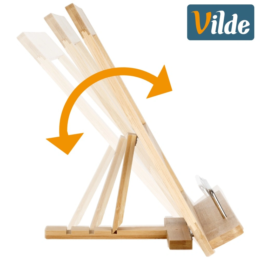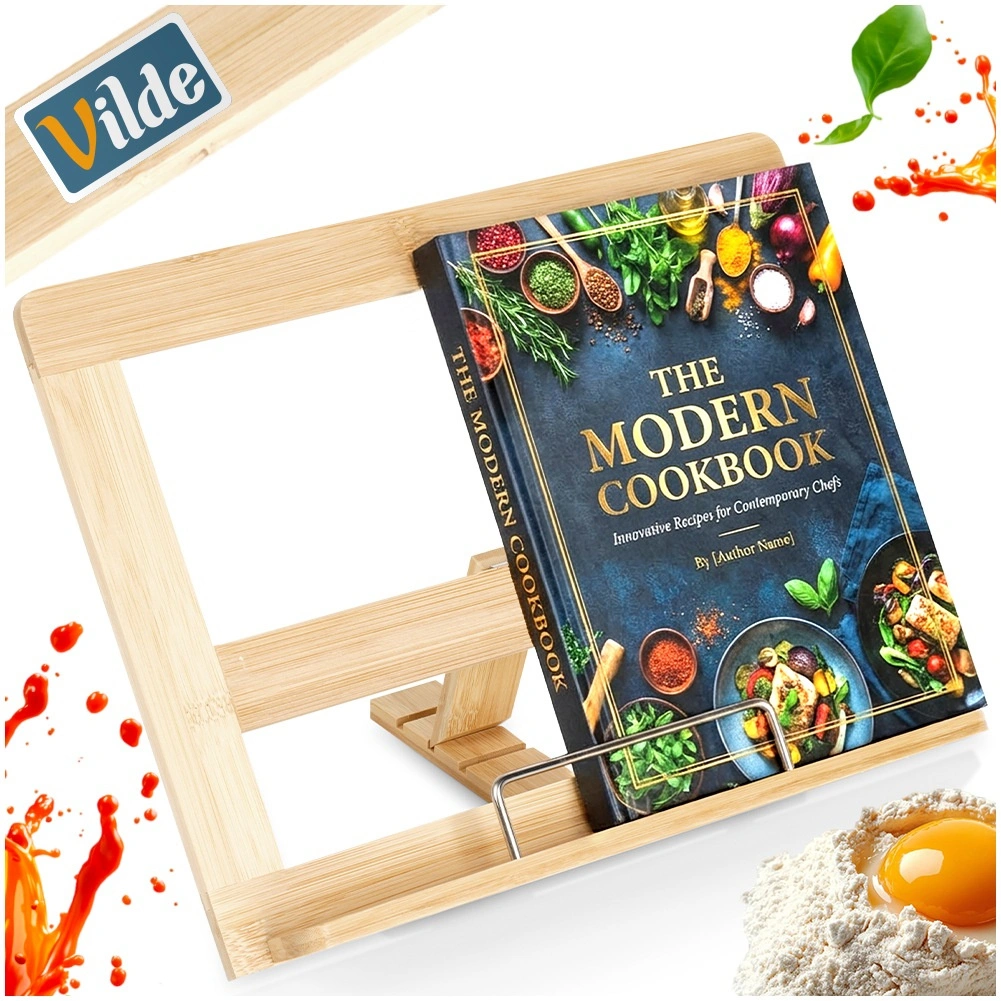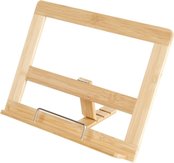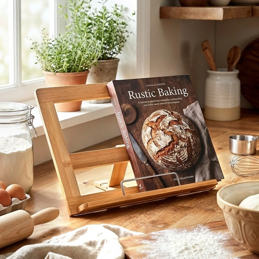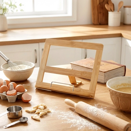 Praktyczny bambusowy stojak na książkę kucharską i tablet uwalnia ręce podczas gotowania i utrzymuje przepis zawsze w zasięgu wzroku. Regulowany kąt nachylenia w trzech pozycjach zapewnia wygodne czytanie, a stabilna konstrukcja z naturalnego bambusa jest odporna na wilgoć i łatwa w czyszczeniu. Idealny do książek, książek kucharskich i tabletów w każdej kuchni.