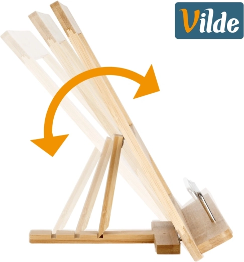 Dzięki odpornemu bambusowi stojak jest lekki, wytrzymały i łatwy w pielęgnacji – bambus naturalnie opiera się wilgoci i nie pochłania zapachów. Składana konstrukcja ułatwia przenoszenie i przechowywanie, więc stojak szybko schowasz do szuflady lub ustawisz między książkami kucharskimi.