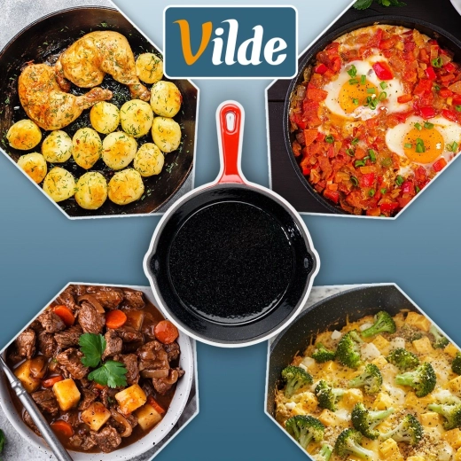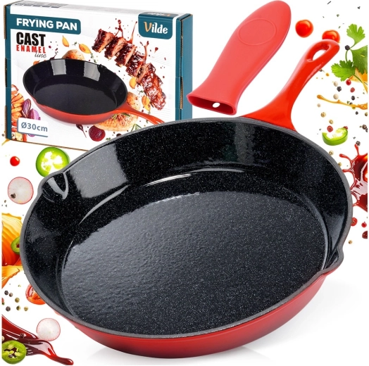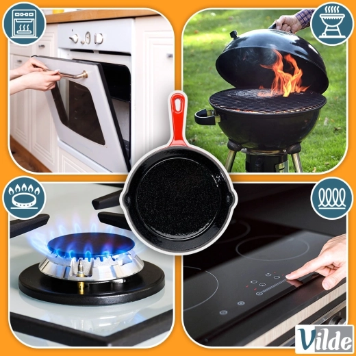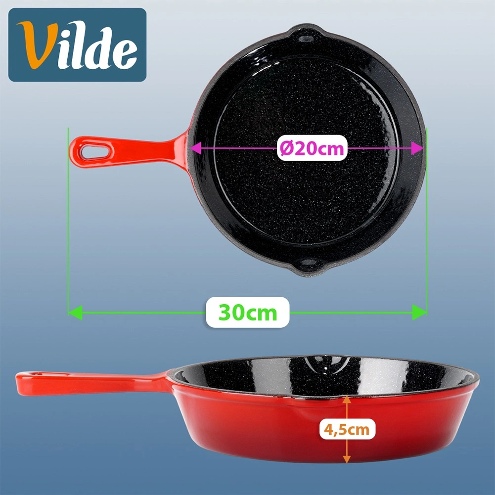 Uniwersalne zastosowanie w kuchni, na grillu i nad otwartym ogniem czyni z tej patelni świetnego towarzysza w domu i w podróży. Solidne wykonanie i ponadczasowy design w czerwonym kolorze podkreślają jakość marki VILDE z linii CAST ENAMEL.