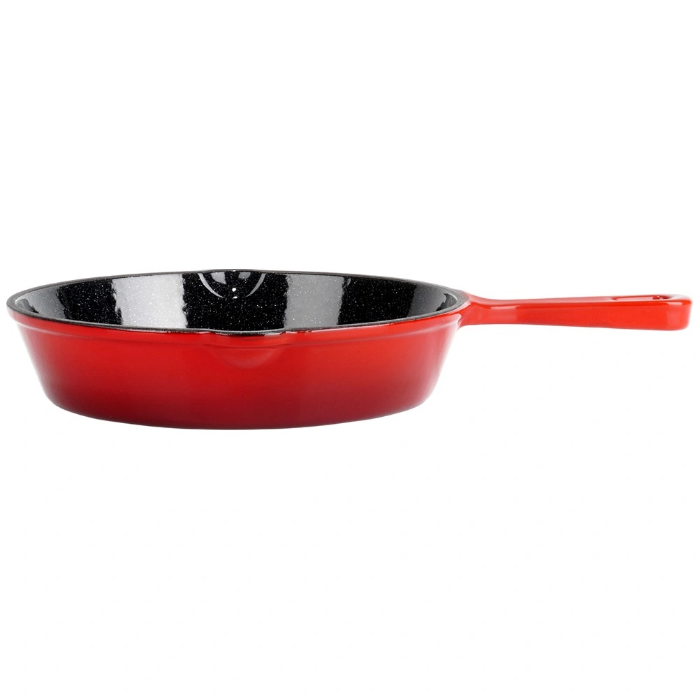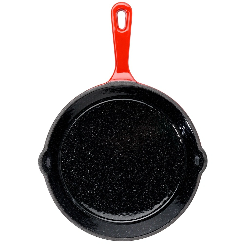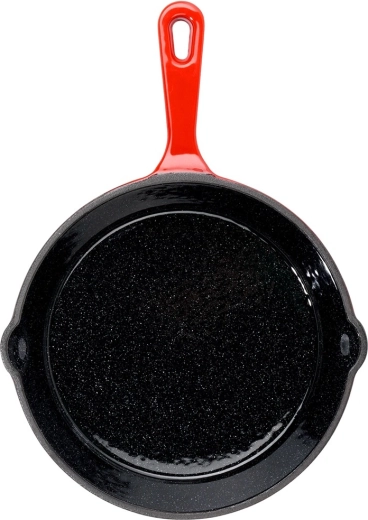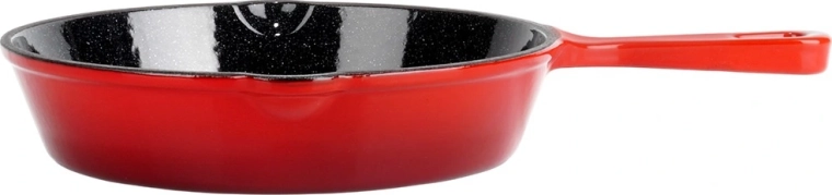 Wewnętrzna czarna i zewnętrzna czerwona emalia chroni patelnię przed korozją, ułatwia czyszczenie i nadaje atrakcyjny wygląd. Idealna do codziennego gotowania.