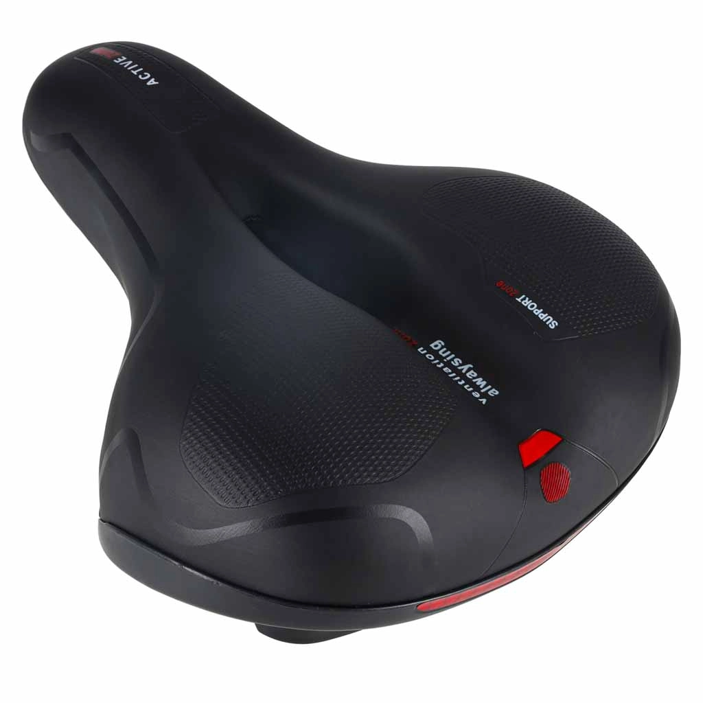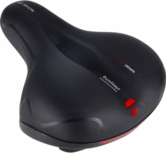 Wygodne siodełko rowerowe do jazdy miejskiej i trekkingowej oferuje szeroki ergonomiczny kształt, elastyczne wypełnienie z pianki oraz podwójną amortyzację sprężynową dla płynnej jazdy bez ucisku. Dzięki centralnemu kanałowi wentylacyjnemu siodełko pozostaje przewiewne, wodoodporna powierzchnia z PU skóry opiera się deszczowi, a zintegrowany tylny odblask zwiększa widoczność po zmroku.
