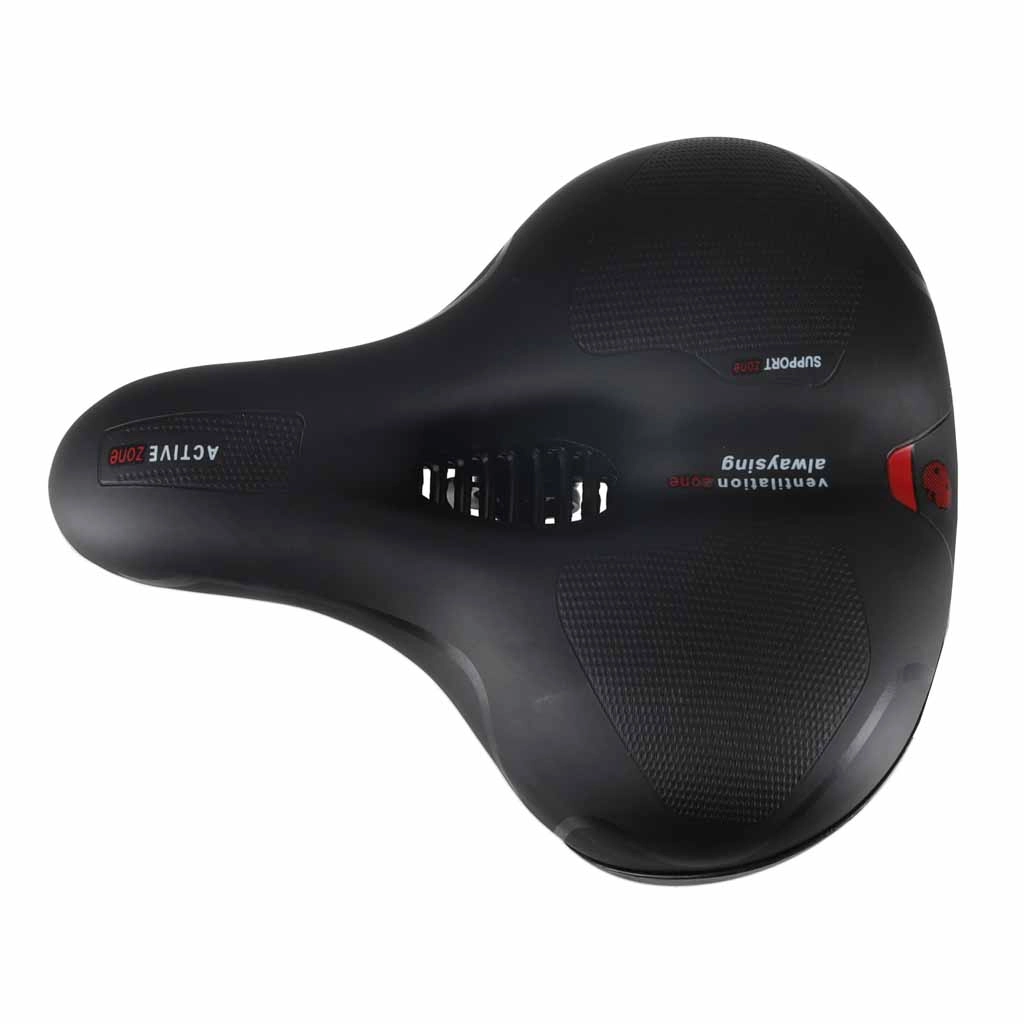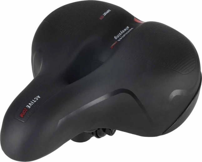 Ciesz się stabilnym podparciem i wygodą zarówno na krótkich dojazdach, jak i długich wycieczkach. Siodełko z wysoko elastyczną pianką PU i stalowymi sprężynami skutecznie pochłania uderzenia i drgania na nierównych nawierzchniach. Anatomiczny kanał środkowy zmniejsza nacisk w wrażliwych partiach i wspiera cyrkulację powietrza.