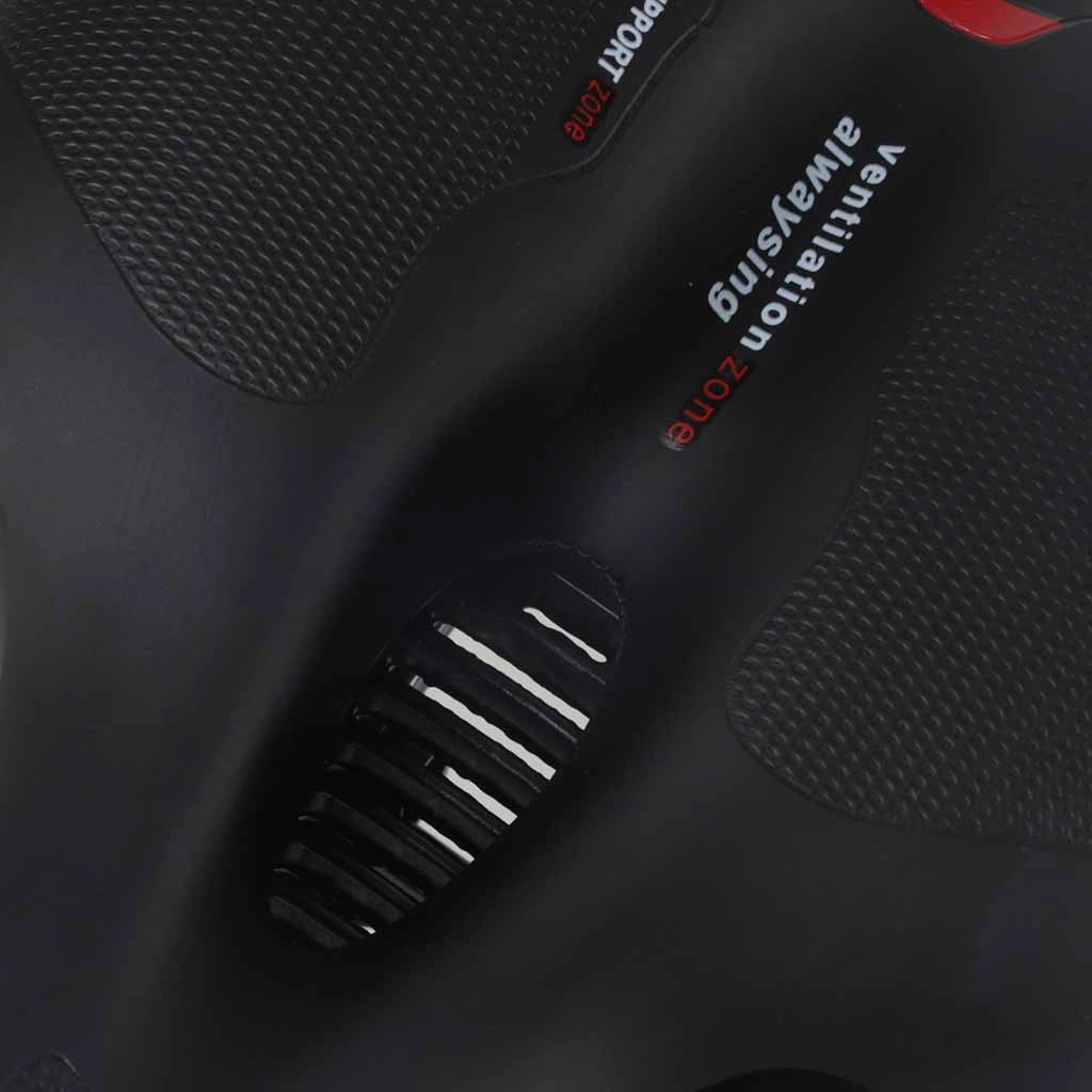 Centralny kanał wentylacyjny odciąża wrażliwe strefy i poprawia przepływ powietrza, zwiększając komfort podczas dłuższych przejazdów.