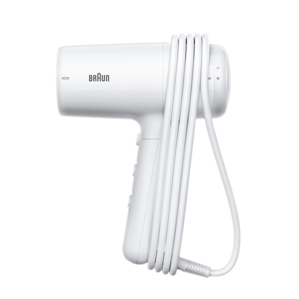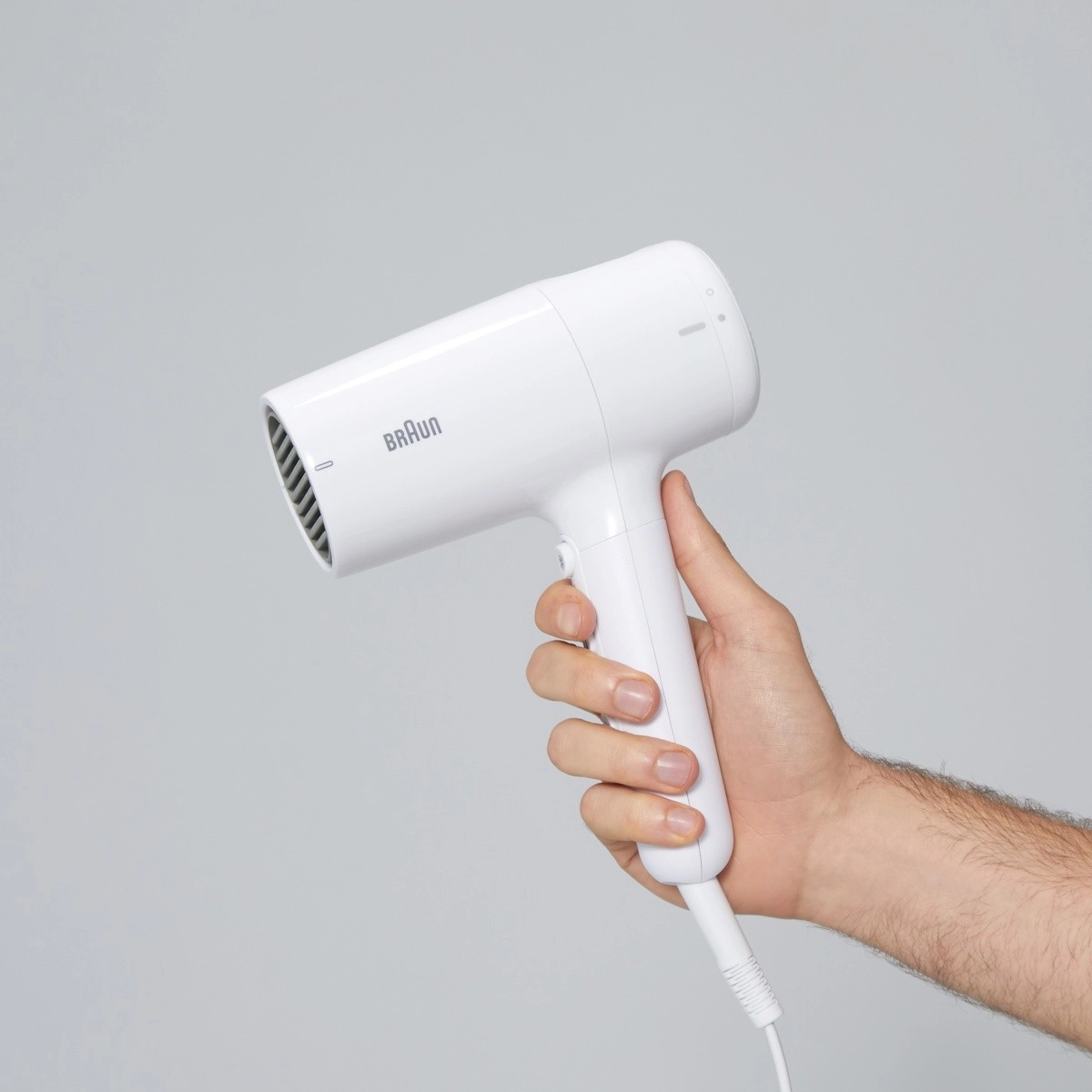 Kompaktowa konstrukcja ze składaną rączką oszczędza miejsce w torbie i łazience, idealna w podróży.