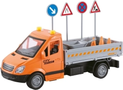 W opakowaniu znajdują się pachołki drogowe, znaki, barierki oraz drobne narzędzia, dzięki którym dzieci łatwo stworzą własny plac budowy lub zamknięcie drogi. Solidne, plastikowe wykonanie jest bezpieczne i odpowiednie do codziennej zabawy.