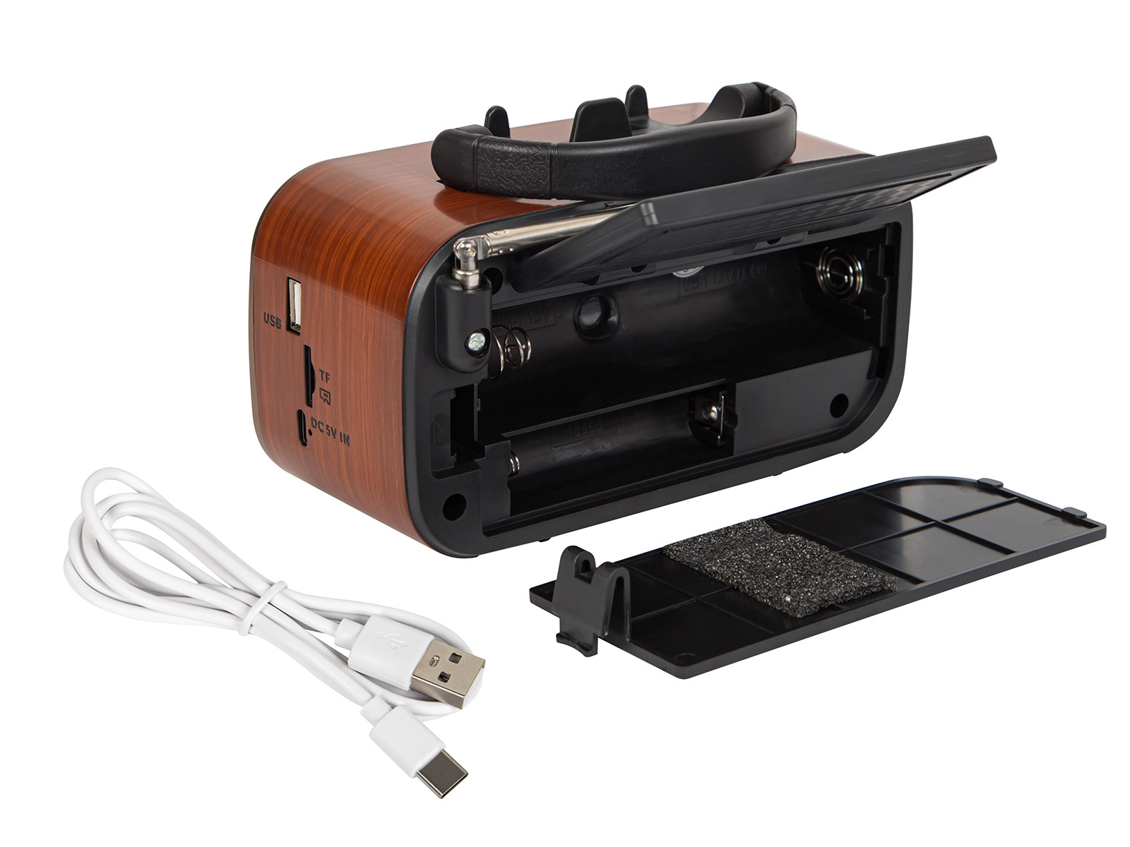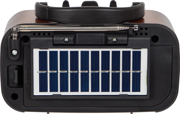 Maksymalną elastyczność zapewniają cztery możliwości zasilania – z sieci, z wbudowanego akumulatora, z tradycyjnych baterii oraz za pomocą zintegrowanego panelu solarnego. Nie zabrakło portu USB i czytnika microSD/TF do odtwarzania plików oraz praktycznej funkcji powerbanku do doładowania telefonu. Obsługa jest prosta, strojenie precyzyjne, a dźwięk dostrojony do przyjemnego odsłuchu w domu i na zewnątrz.