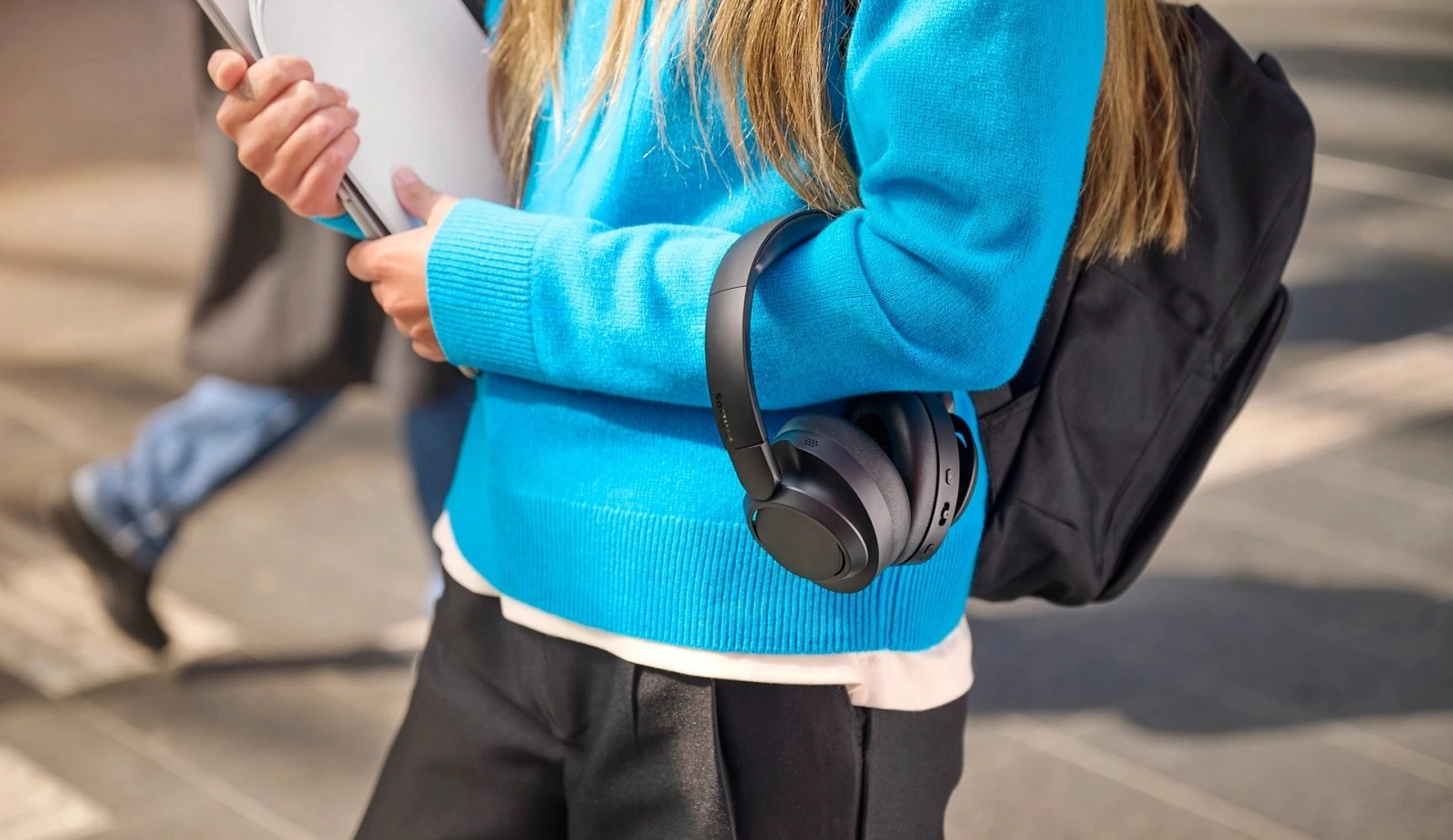 Duże przetworniki 40 mm oferują bogaty dźwięk z wyrazistym basem nawet przy niższej głośności – wystarczy włączyć Dynamic Bass przyciskiem lub w aplikacji Philips Headphones. Lekka konstrukcja z nausznikami z pianki pamięciowej zapewnia wygodę podczas długiego noszenia, a składane, płaskie muszle ułatwiają przenoszenie w plecaku lub torbie. Z do 70 h słuchania (45 h z ANC), szybkim ładowaniem 5 min na ok. 3 h oraz kablem USB‑C jesteś gotów w każdej chwili ruszyć w drogę.