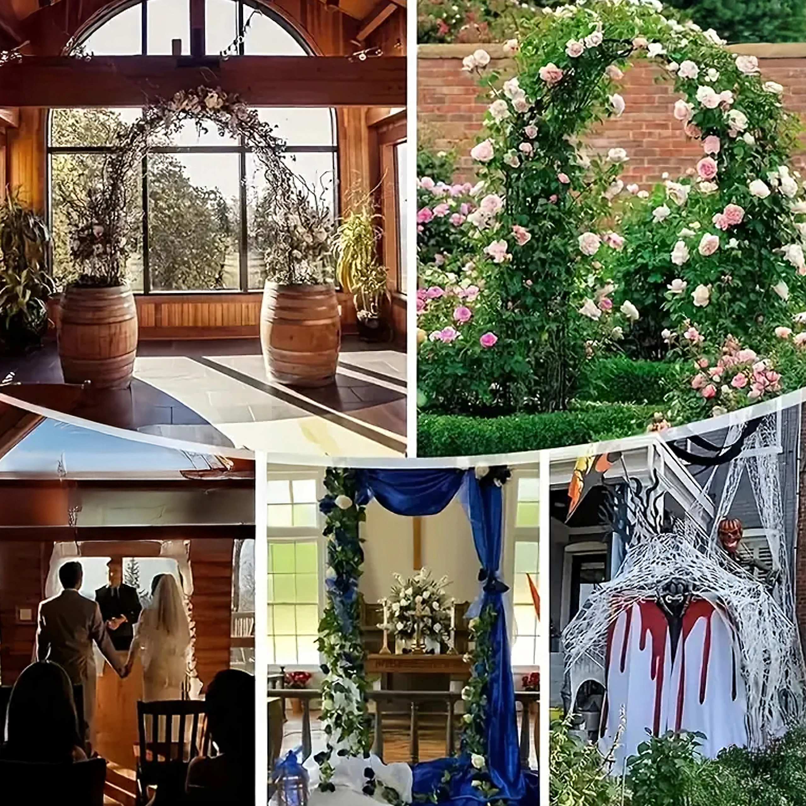 - Efekt estetyczny: tworzy naturalny zielony portal lub bramę ślubną