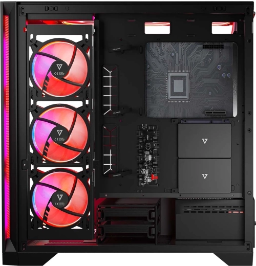Wybierz między tacką do zarządzania okablowaniem a ramą na 3×120 mm wentylatory przy płycie głównej. Elastyczność dla wyglądu i wydajności.