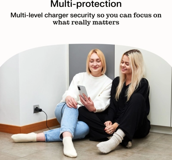 Wbudowana inteligentna regulacja ładowania automatycznie dopasowuje moc do podłączonego urządzenia, maksymalizując szybkość, bezpieczeństwo i niską temperaturę pracy. Wielopoziomowe zabezpieczenia chronią przed przepięciem, przeciążeniem i przegrzaniem, dzięki czemu możesz zostawić ładowarkę bez nadzoru.