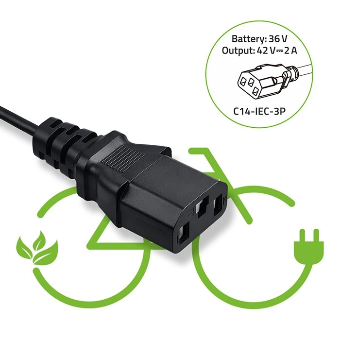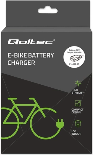 Kompaktowa ładowarka Qoltec do e‑bike’ów zapewnia wyjście 42 V / 2 A (84 W) dla akumulatorów 36 V Li‑ion. Dzięki złączu C14 IEC 3‑pin i zasilaniu ze standardowego gniazda 230 V jest idealna do użytku domowego i w podróży. Ładowarka oferuje wysokie bezpieczeństwo, niezawodność i skuteczne chłodzenie, posiada LED do wskazywania ładowania oraz odporność IP54 na kurz i bryzgi wody.