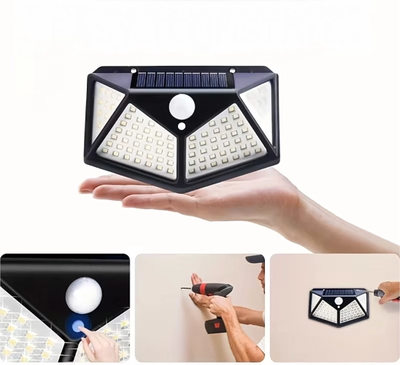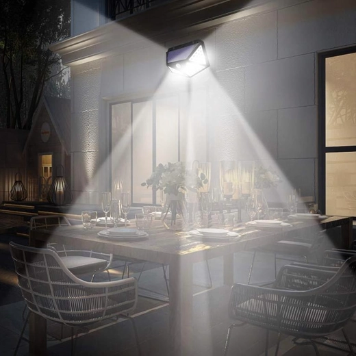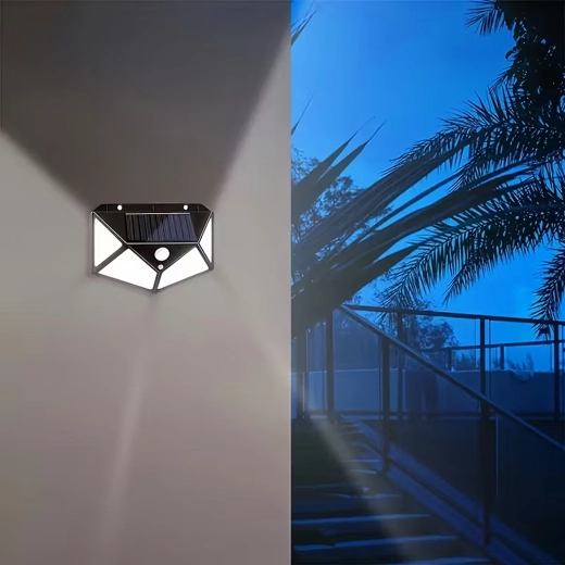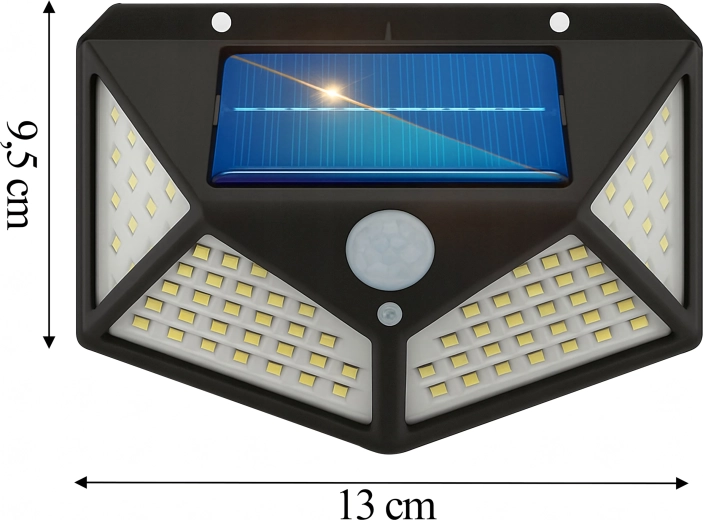 Inteligentny solarny kinkiet zapewnia niezawodne i oszczędne oświetlenie wszędzie tam, gdzie potrzebujesz bezpiecznego poruszania się po zmroku. Wbudowany panel solarny ładuje akumulator w ciągu dnia, a wydajne 100 LED gwarantuje jasne białe światło o szerokim zasięgu. Czujnik PIR reaguje na ruch i uruchamia światło tylko wtedy, gdy jest to potrzebne, co wydłuża żywotność akumulatora.