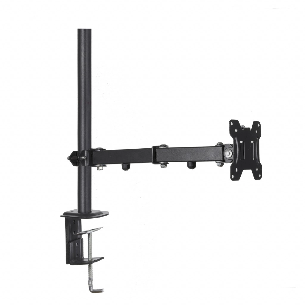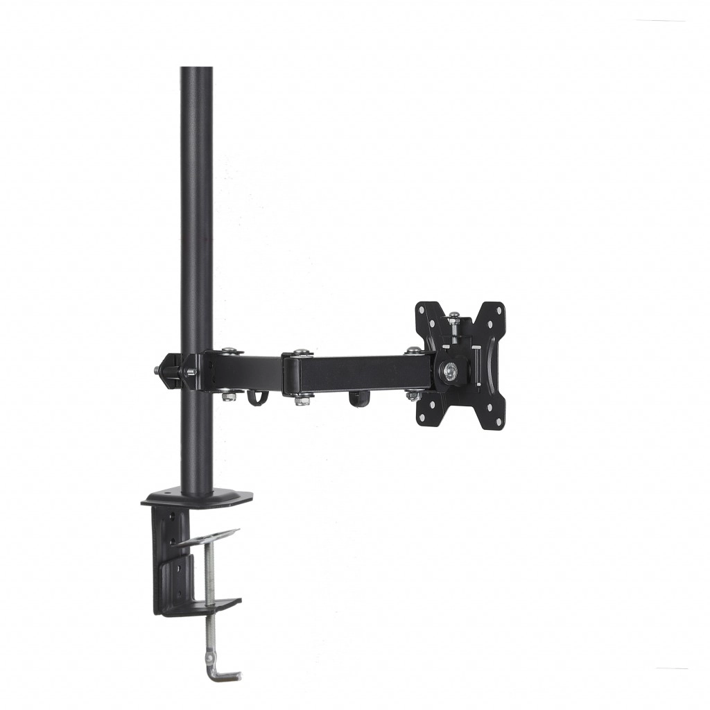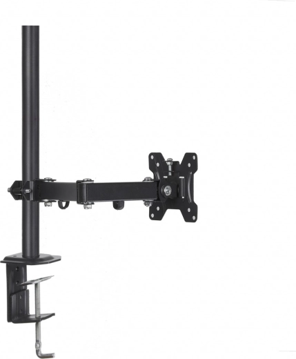 Uniwersalny biurkowy uchwyt na jeden monitor o przekątnej 13–32" i udźwigu do 8 kg oszczędza miejsce na biurku i poprawia ergonomię. Oferuje szeroki zakres regulacji dzięki trzem przegubom, pochylenie pionowe i poziome, funkcję PIVOT (obrót do pozycji pionowej) oraz ukryte prowadzenie kabli. Stabilny montaż zapewnia zacisk typu C lub przepust do blatu biurka.