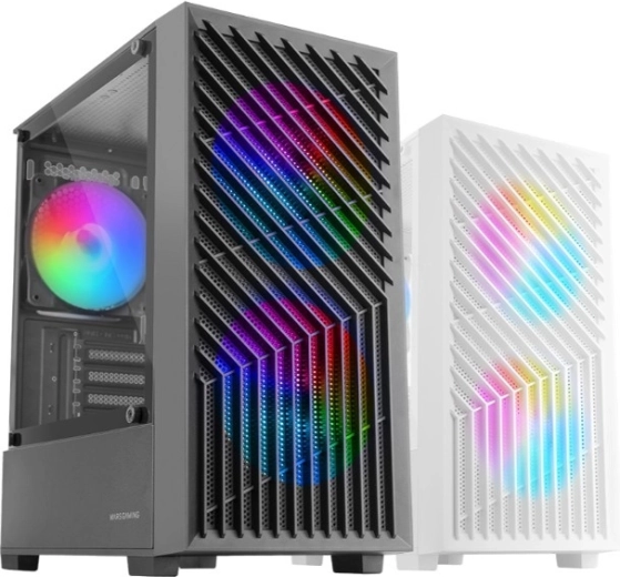 Kompaktowa obudowa gamingowa MARS MC‑Vortex w formacie MicroATX oferuje doskonały przepływ powietrza dzięki frontowi z siatki, panelowi bocznemu z hartowanego szkła oraz trzem fabrycznie zainstalowanym wentylatorom FRGB. Wspiera do 7 wentylatorów, chłodzenie wodne i ma dwukomorową konstrukcję dla schludnego prowadzenia okablowania i najwyższej wydajności.