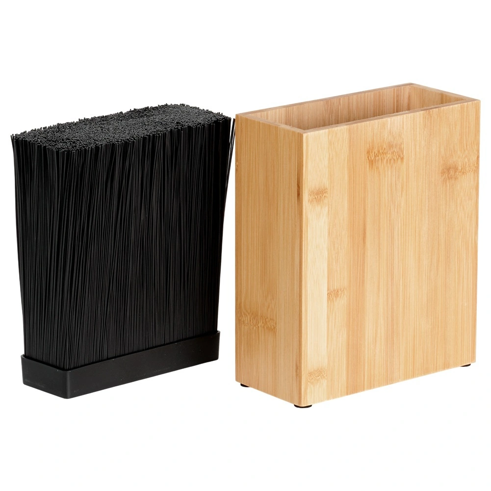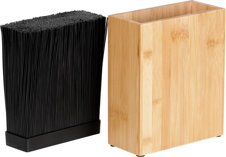 Wyjmowana wkładka umożliwia łatwe czyszczenie, a dzięki kompaktowym wymiarom blok idealnie nadaje się na blat roboczy. Bambus to ekologiczny i wytrzymały materiał, który naturalnie współgra z innymi drewnianymi dodatkami.