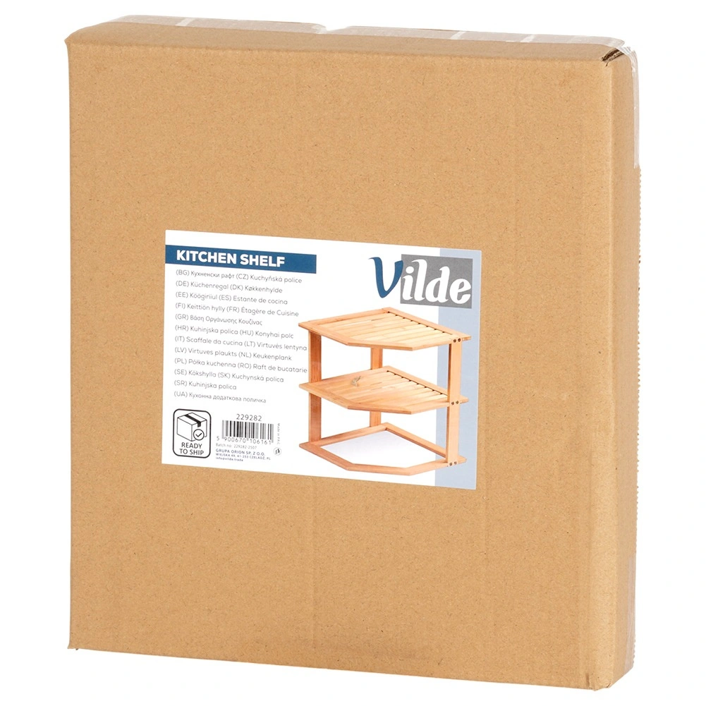 Maksymalizuj możliwości przechowywania w każdym rogu. Narożna półka bambusowa o wymiarach 25 × 25 × 27 cm przejrzyście zorganizuje naczynia, przyprawy lub drobne akcesoria i utrzyma blat w czystości. Naturalny bambus nadaje wnętrzu ciepły, nowoczesny wygląd.