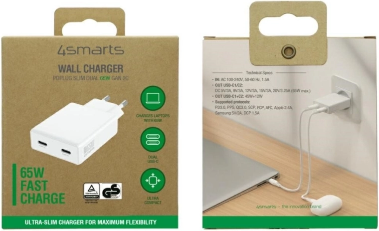 Kompaktowa i wydajna ładowarka PDPlug z technologią GaN zapewnia szybkie ładowanie do 65 W przez 2× USB‑C Power Delivery. Dzięki inteligentnemu zarządzaniu energią automatycznie rozpoznaje urządzenie i dostosowuje moc dla maksymalnej szybkości i bezpieczeństwa. Smukła konstrukcja Slim Plug z płaską wtyczką z łatwością mieści się także za meblami, idealna do domu, biura i w podróży.