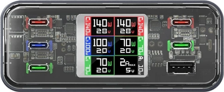 Modułowy system DIY pozwala elastycznie rozmieścić porty zgodnie z własnymi potrzebami. Zintegrowany wyświetlacz LED pokazuje bieżący rozdział mocy i parametry ładowania. Aluminiowa obudowa nie tylko świetnie wygląda, ale też skutecznie odprowadza ciepło i zwiększa trwałość całego urządzenia.