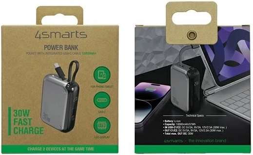 Powerbanka Pocket to idealny wybór do codziennego użytku i na wyjazdy. Dzięki szybkiemu ładowaniu 30 W poradzi sobie ze smartfonami, tabletami, bezprzewodowymi słuchawkami, a nawet mniejszymi laptopami. Zintegrowany kabel USB‑C (15 cm) oznacza mniej noszonych akcesoriów – wystarczy podłączyć i ładować.