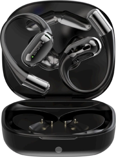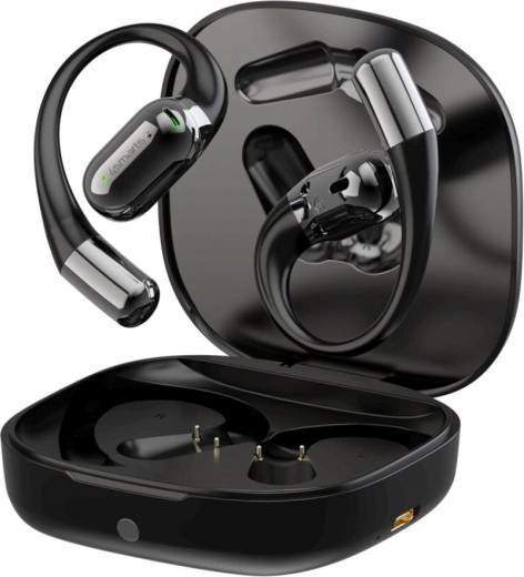 Konstrukcja open-ear utrzymuje kontakt z otoczeniem podczas chodzenia i sportu, a ergonomiczne haczyki za ucho zapewniają stabilne i wygodne dopasowanie przez cały dzień.