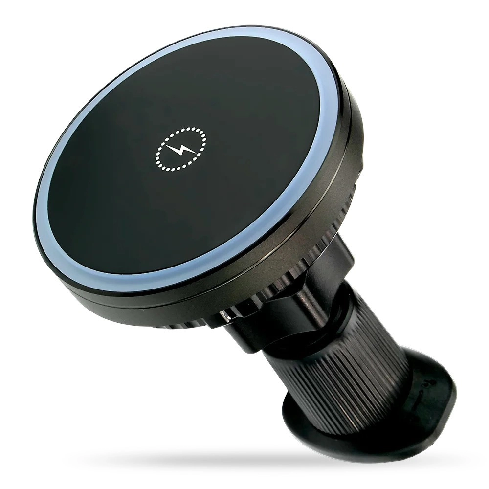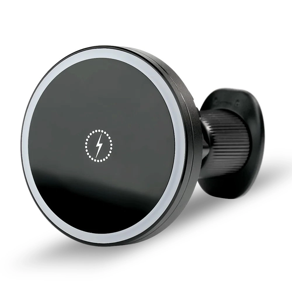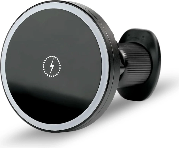 Korzystaj z bezpiecznej obsługi telefonu w trybie hands‑free w podróży. Magnetyczny uchwyt everActive z obsługą Apple MagSafe zapewnia natychmiastowe przymocowanie kompatybilnego iPhone'a oraz stabilne 15‑watowe ładowanie bezprzewodowe bez plątaniny kabli. Kompaktowe, okrągłe korpus z pierścieniem LED czytelnie informuje o zasilaniu.
