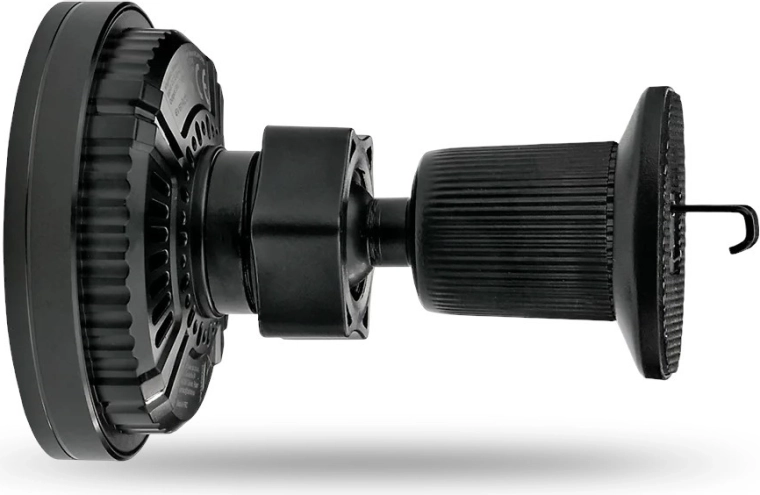Wytrzymały klips z pierścieniem blokującym zapewnia stabilne przymocowanie do większości samochodowych kratek wentylacyjnych bez drgań.