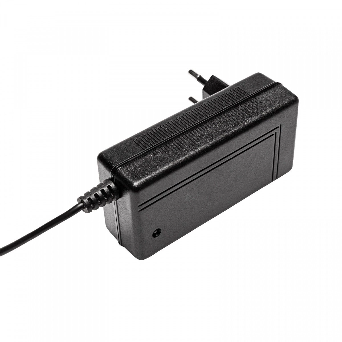 Zasilacz dostarcza stabilne 26 V / 0,4 A, co zapewnia bezpieczne i równomierne ładowanie akumulatora bez zbędnego nagrzewania i spadków wydajności.