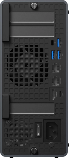 Szerokie możliwości rozbudowy ucieszą profesjonalistów: do 256 GB DDR5 w czterech gniazdach SO‑DIMM oraz 4× M.2 NVMe (PCIe 4.0/3.0) umożliwiają tworzenie szybkich macierzy z obsługą RAID 0/1/5/10. Wyposażenie sieciowe z 2× 25GbE SFP+, 10GbE RJ45 i 2,5GbE RJ45 (vPro) wnosi standard przemysłowy do formatu biurkowego.