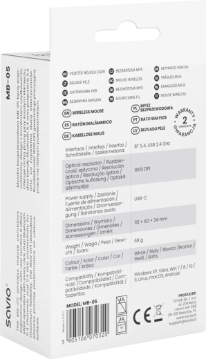 Bezprzewodowa mysz MB-05 została zaprojektowana z myślą o całodziennym komforcie i produktywności. Ciche kliknięcia minimalizują hałas w biurze i kawiarni, a symetryczny design sprawdzi się zarówno u prawo-, jak i leworęcznych. Niska masa 68 g odciąża nadgarstki i ułatwia precyzyjne sterowanie kursorem w pracy i nauce.