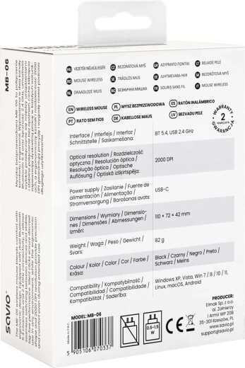 Bezprzewodowa mysz SAVIO MB-06 łączy nowoczesny design i topową łączność do codziennej pracy. Bluetooth 5.4 gwarantuje stabilne połączenie i niższe zużycie energii, a odbiornik 2.4 GHz zapewnia natychmiastową reakcję bez kabli. Dzięki dwóm kanałom Bluetooth łatwo przełączysz się między laptopem a tabletem jednym przyciskiem.