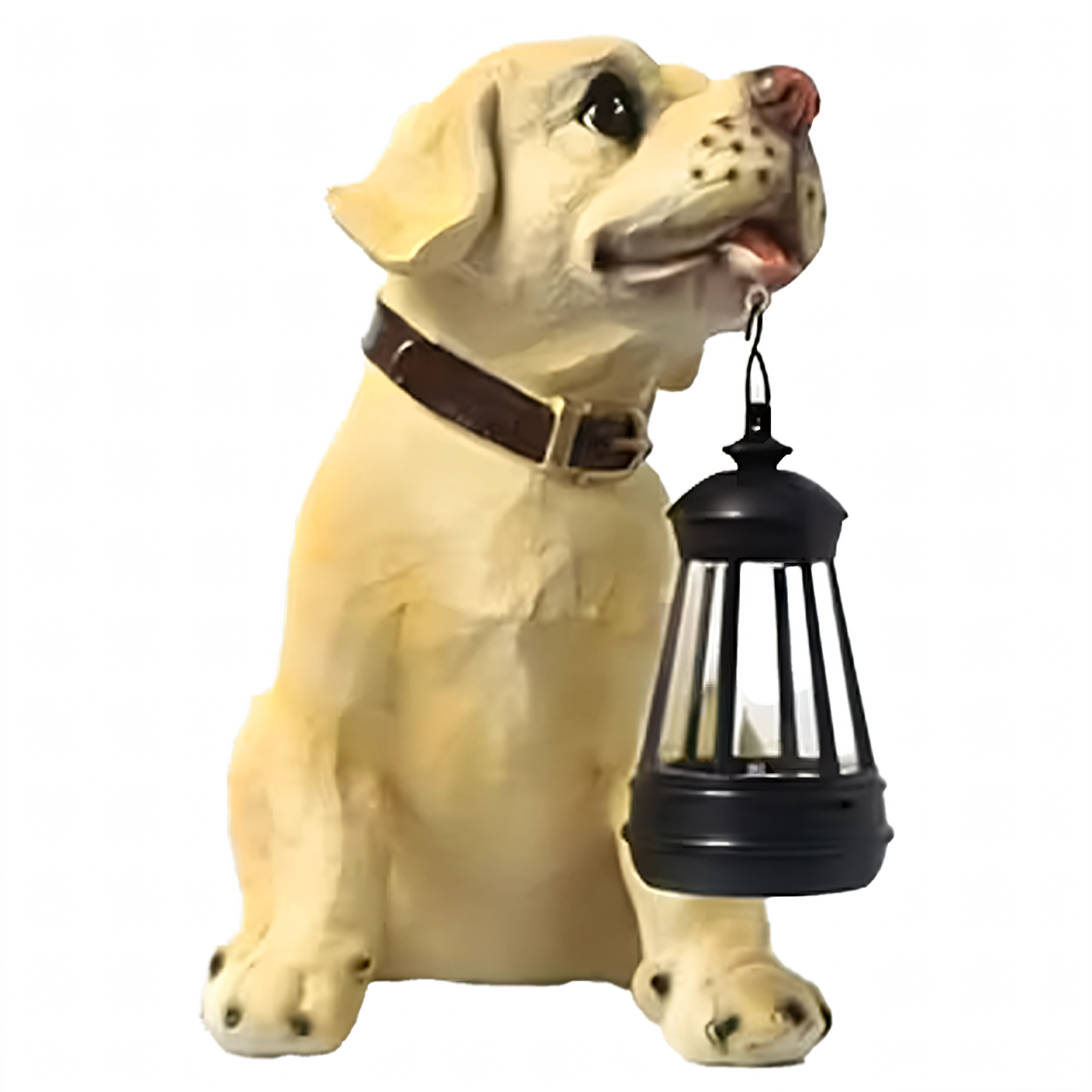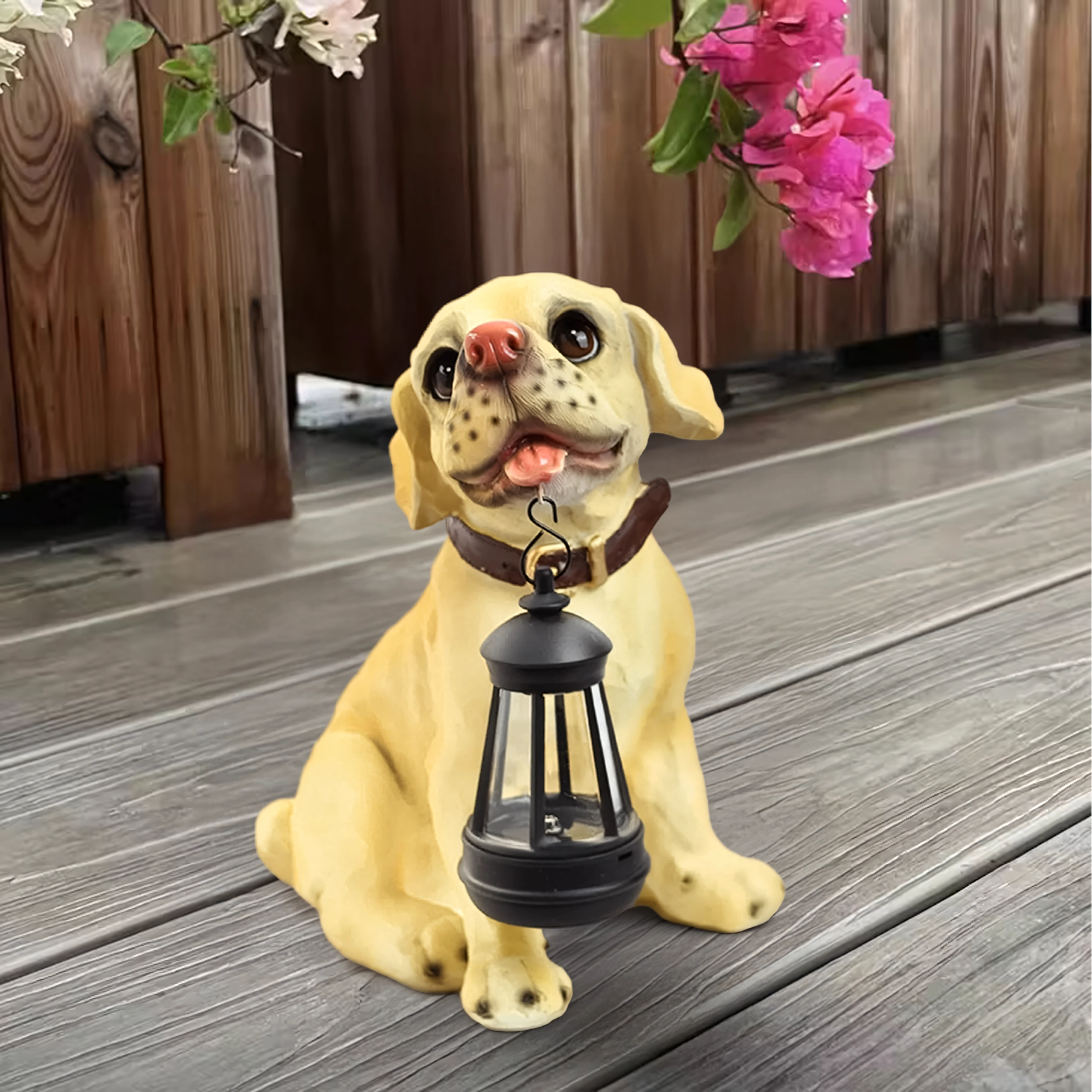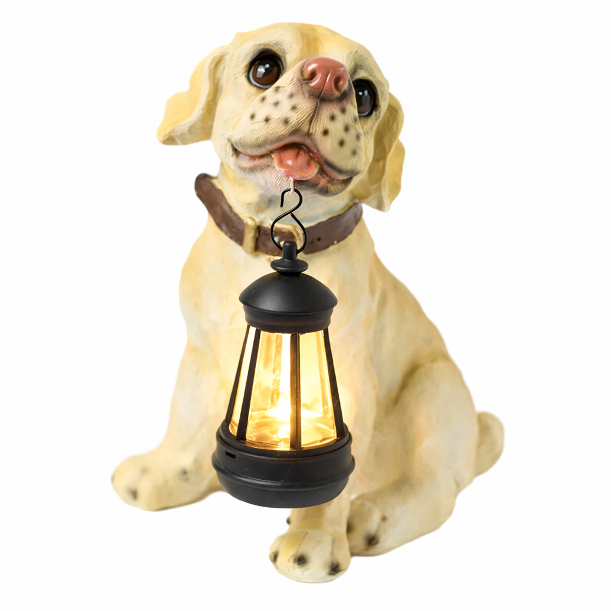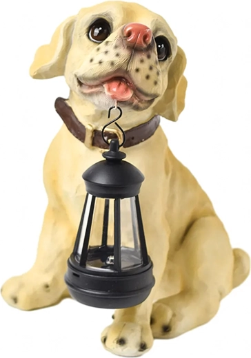 Ogrodowa dekoracyjna lampa – figurka psa z latarenką LED