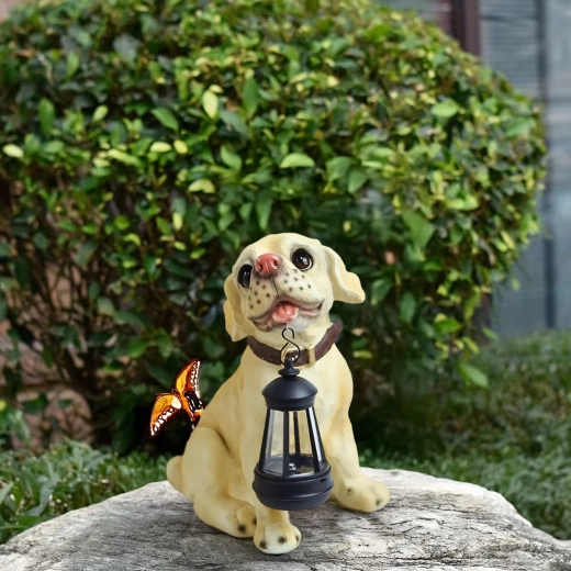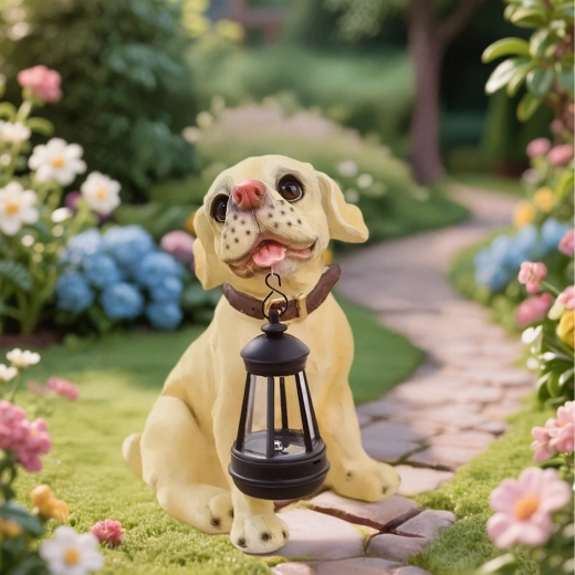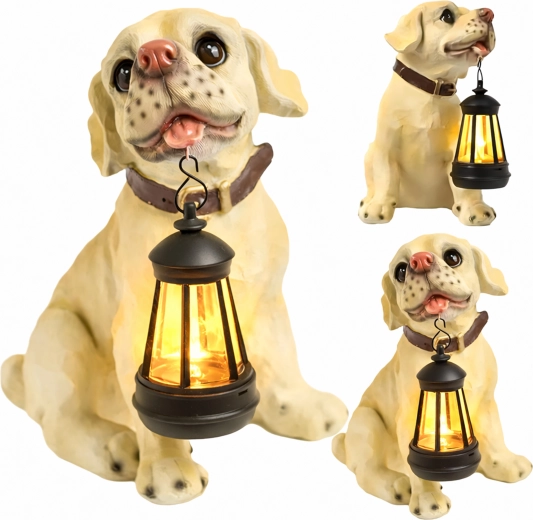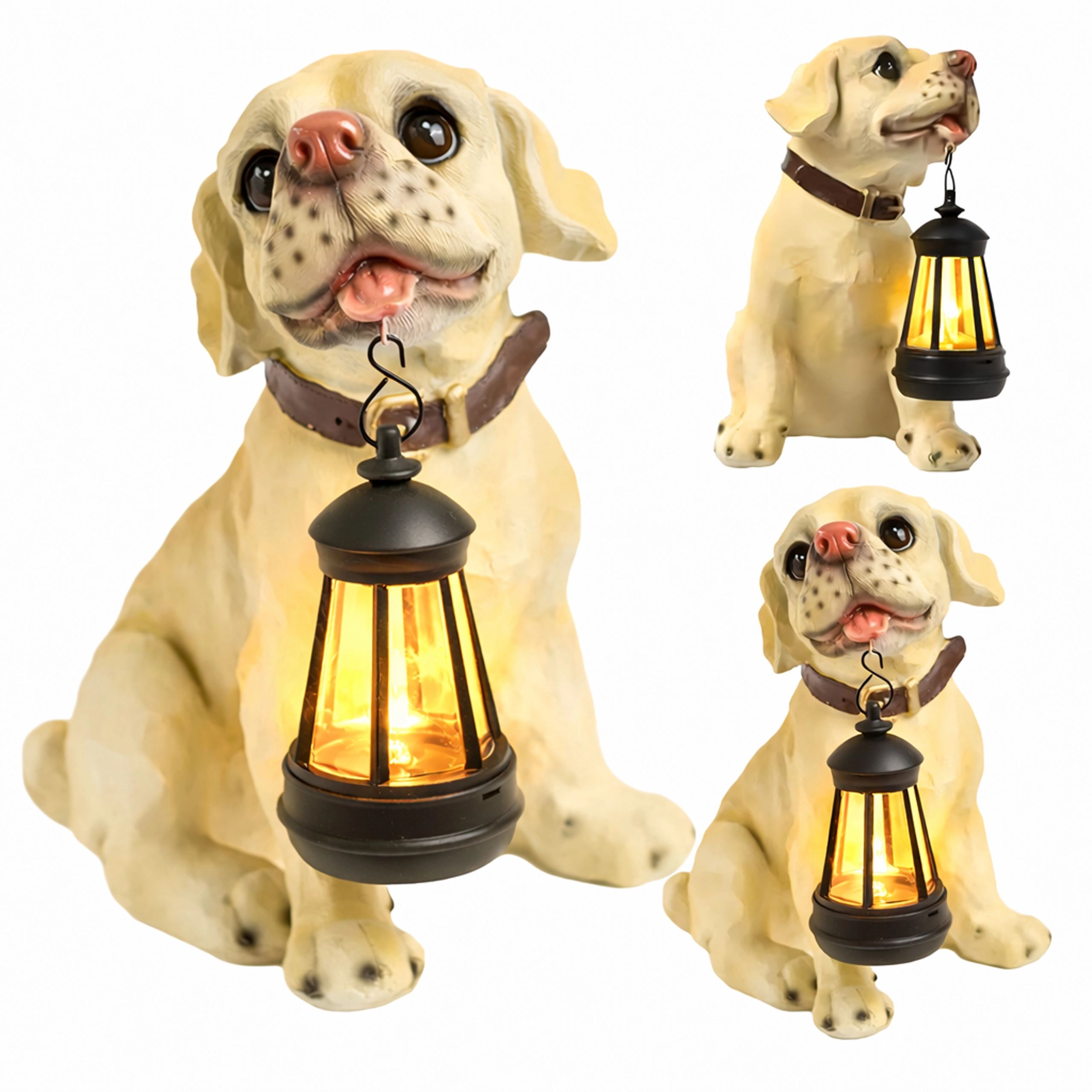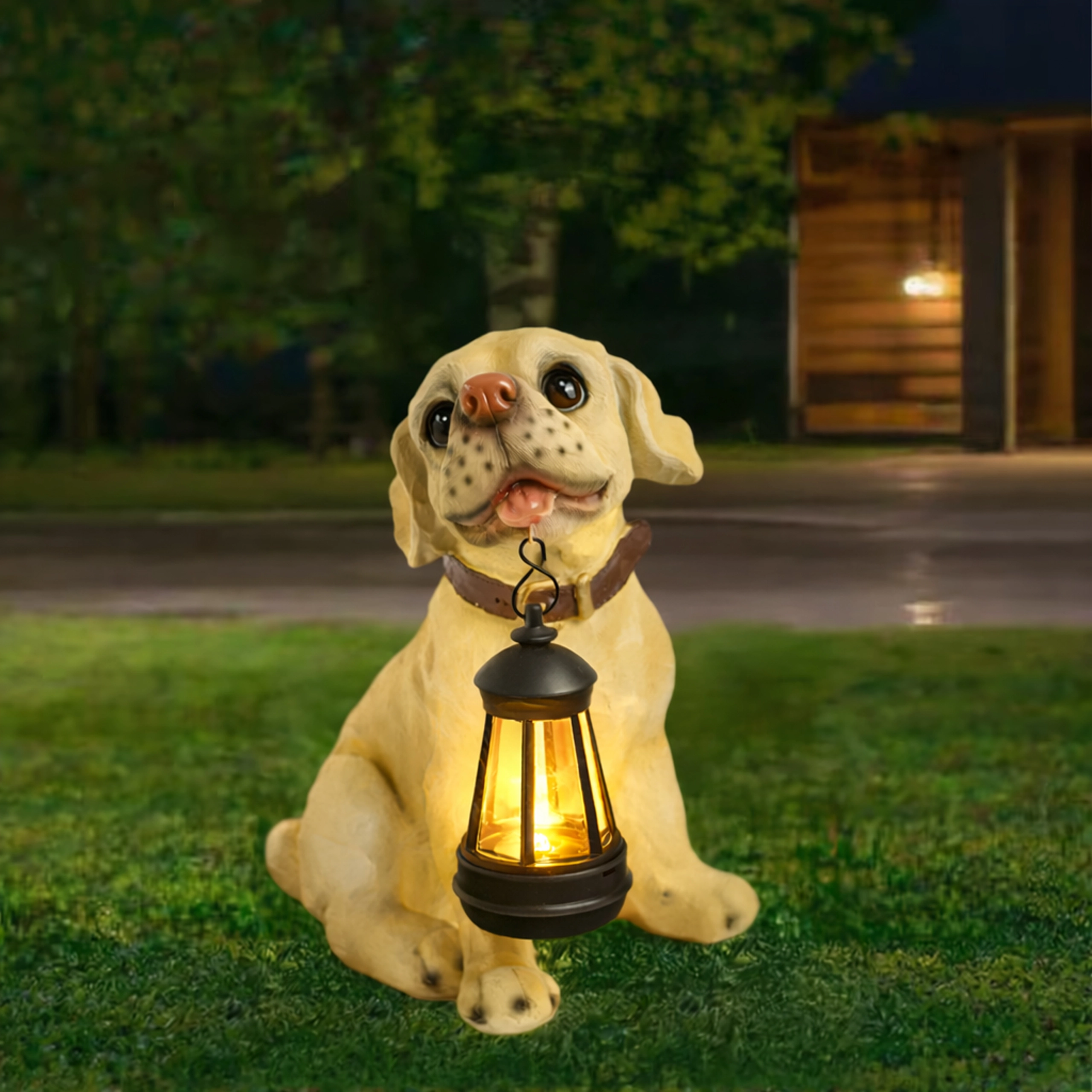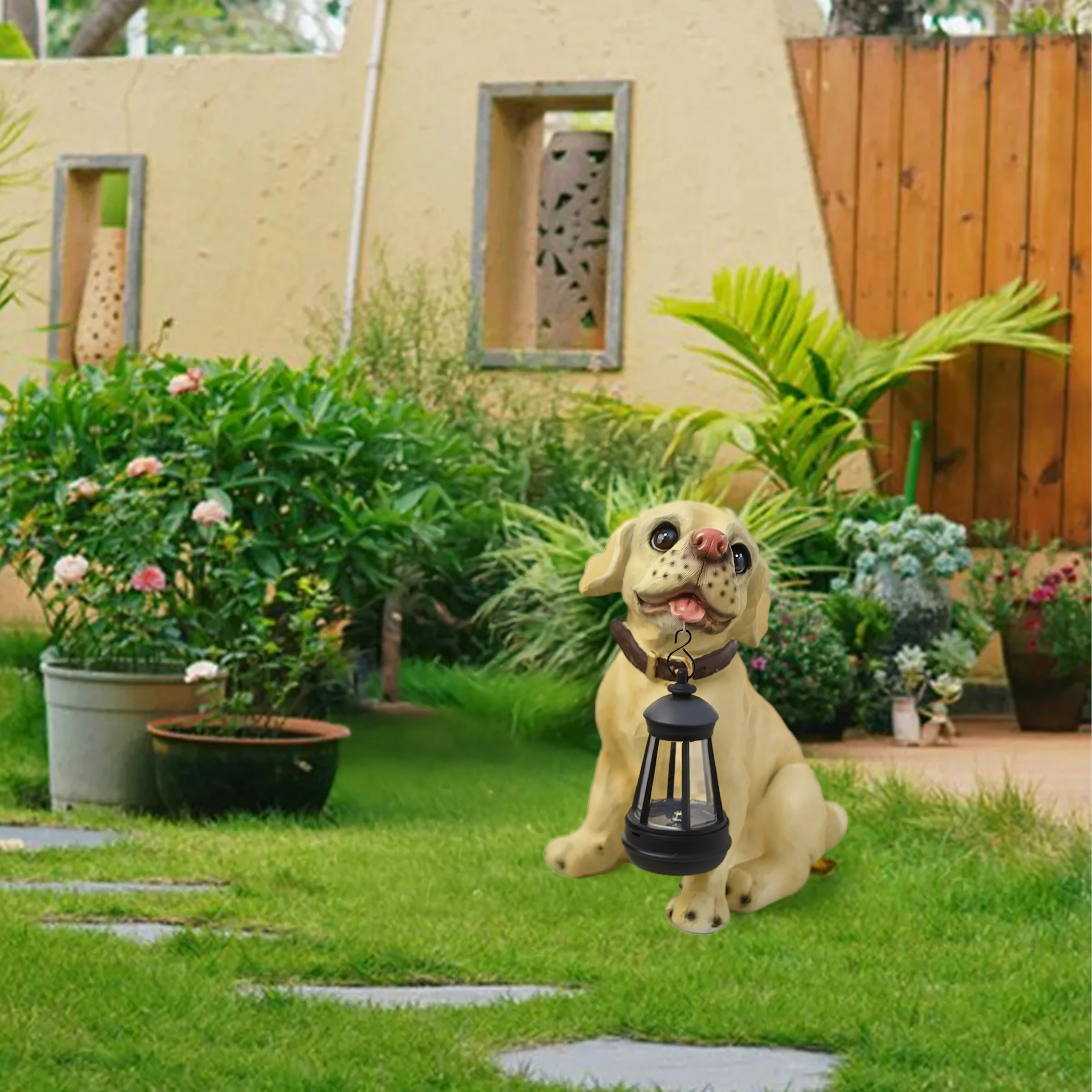 Ogrodowa dekoracyjna lampa – figurka psa z latarenką LED