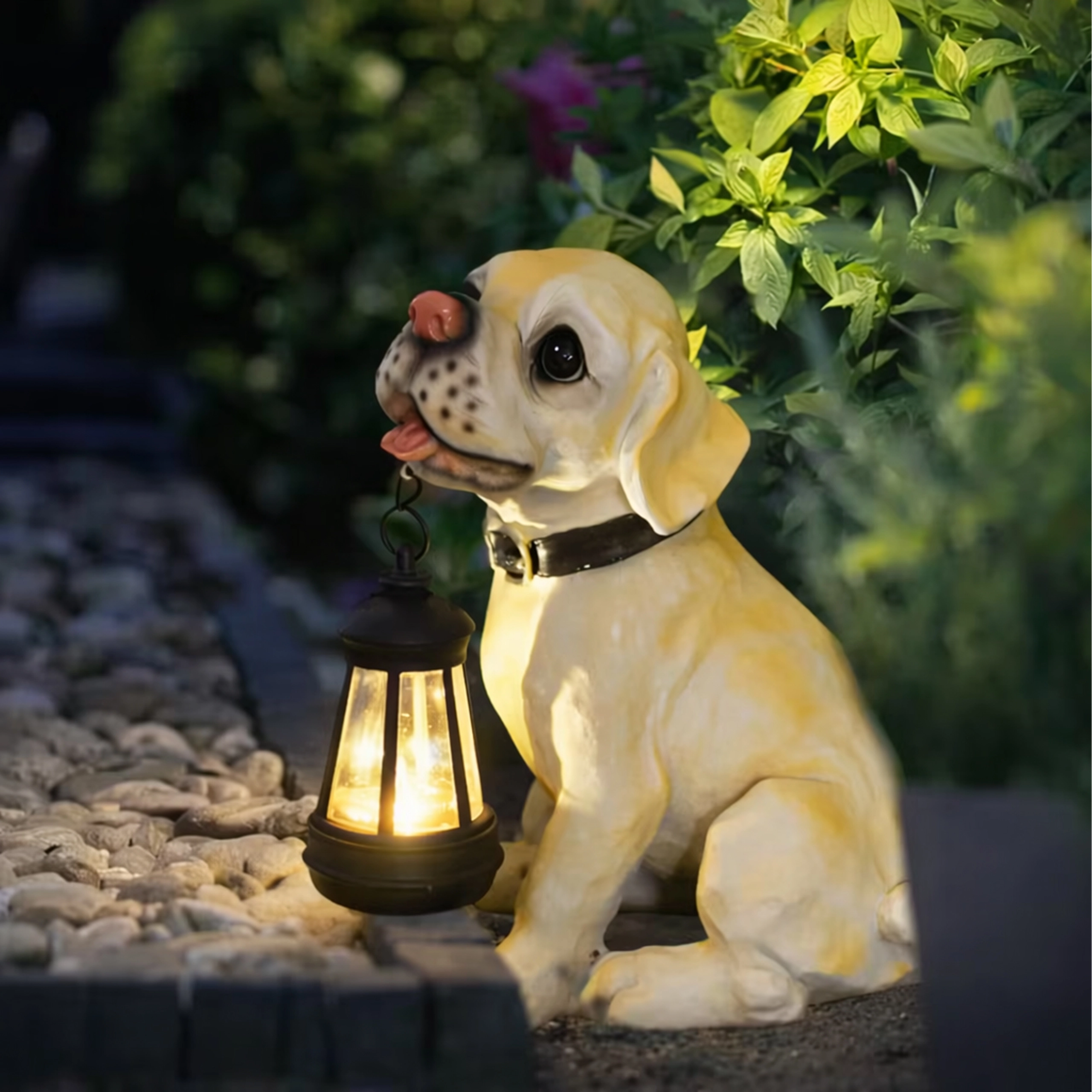Solarny ogrodowy lampion – dekoracyjny pies z latarenką LED