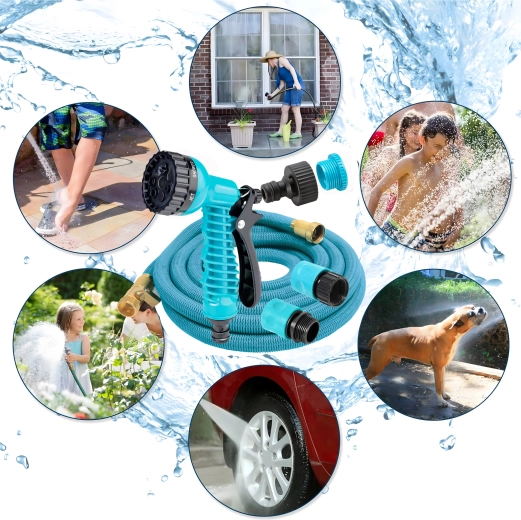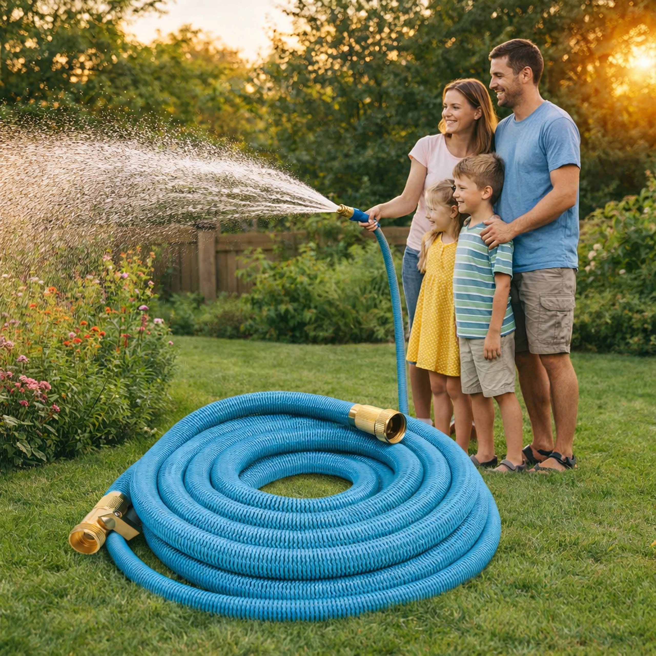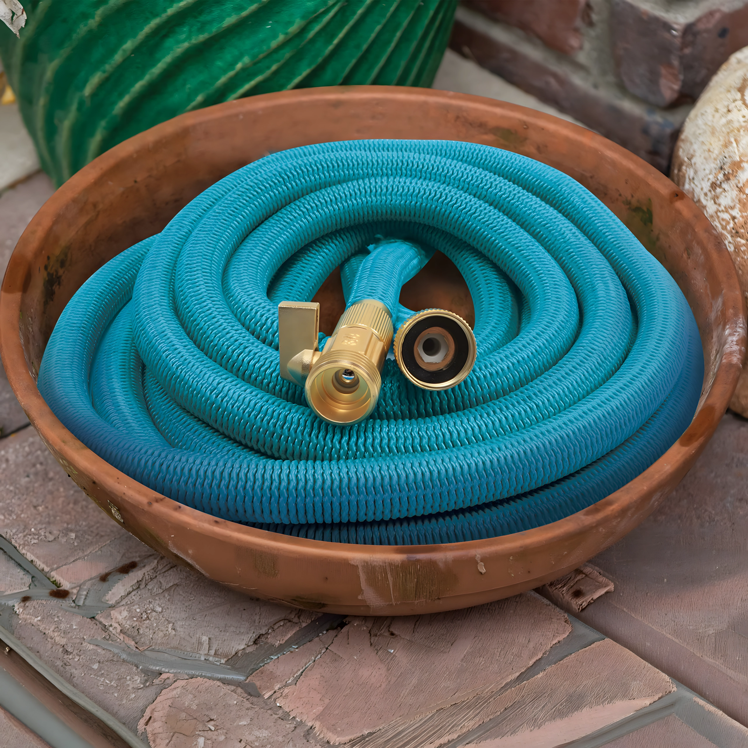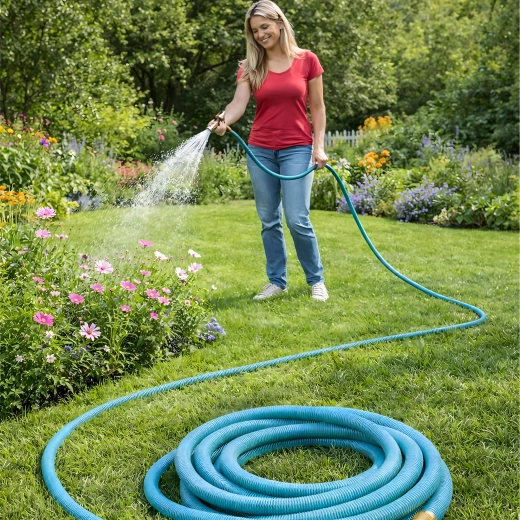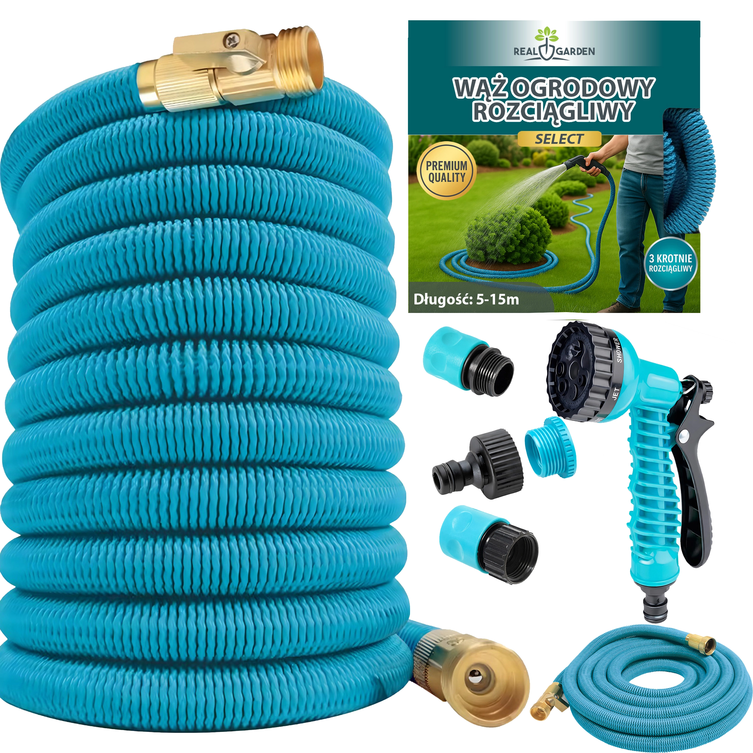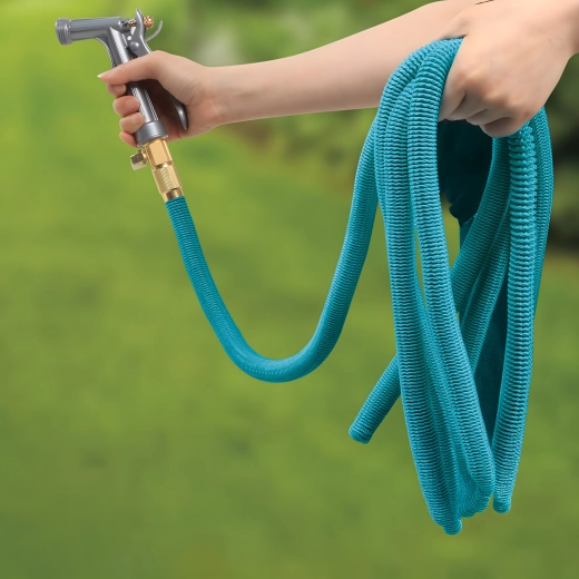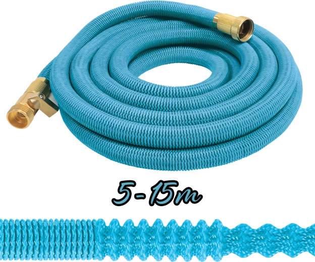 Wąż pod wpływem ciśnienia wody wydłuża się nawet trzykrotnie, a po zakręceniu wody kurczy się do poręcznego rozmiaru. Oplot odporny na złamania zapewnia płynny przepływ bez supłów.